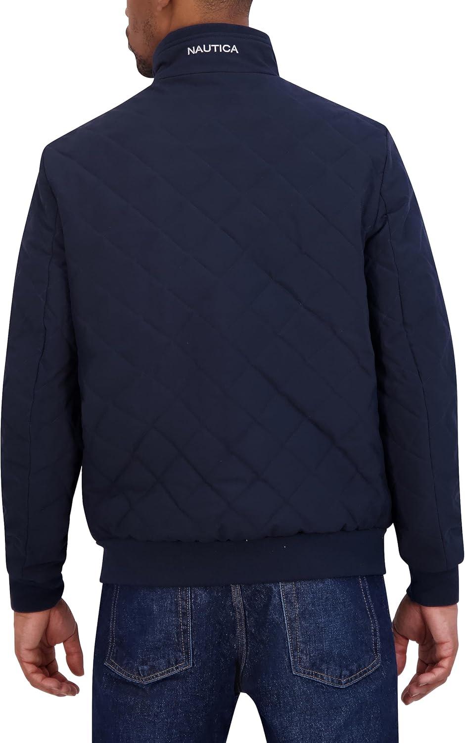 Nautica Men’s Lightweight Quilted Bomber Jacket – Mechanical Stretch Wind & Water-Resistant(Jet)