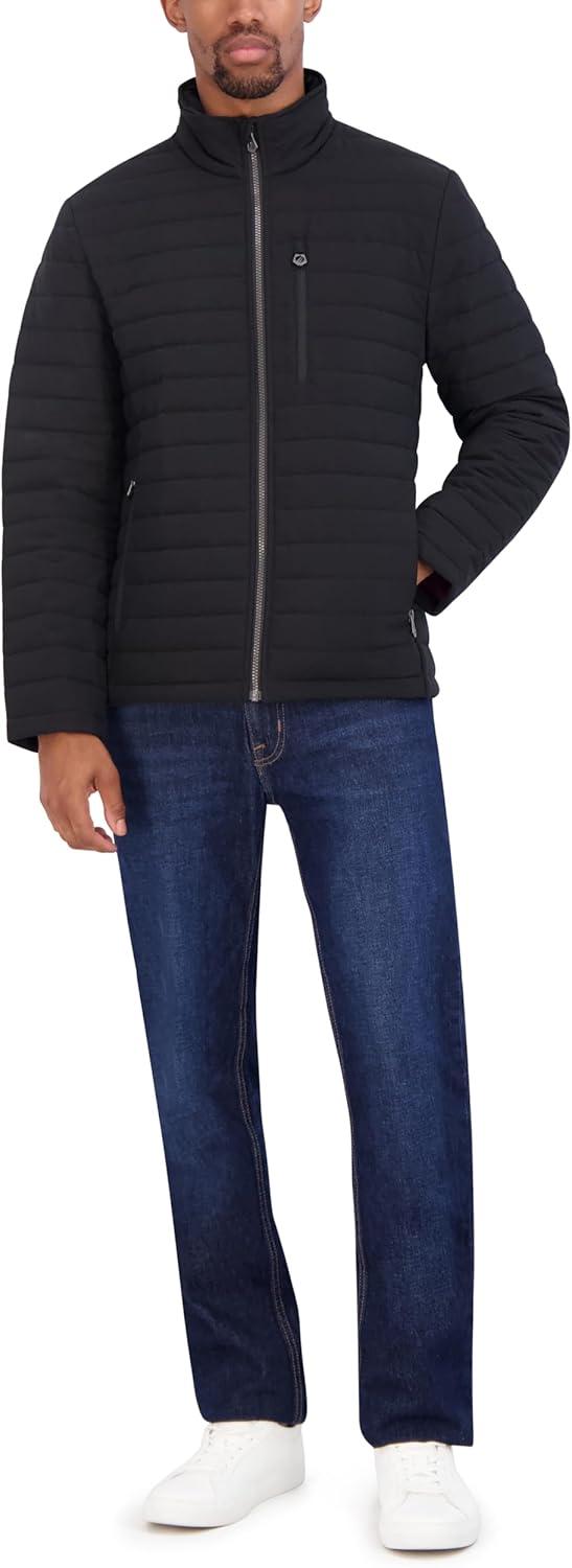 Nautica Men's Lightweight Quilted Puffer Jacket – Full Zip Transitional Outerwear(Black)