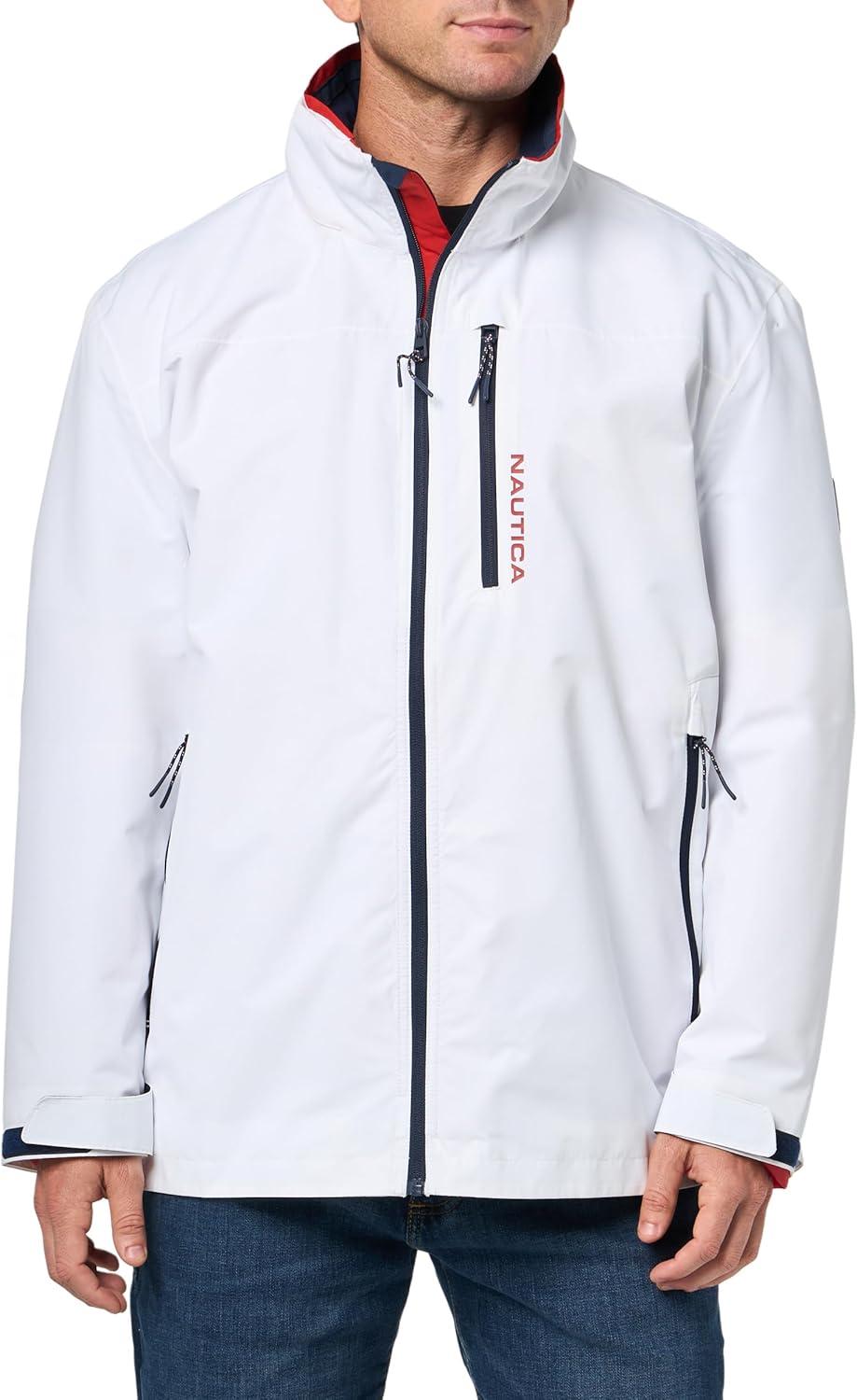 Nautica Men’s Lightweight Sailing Jacket – Waterproof & Windproof, Breathable, Azure(Snow)