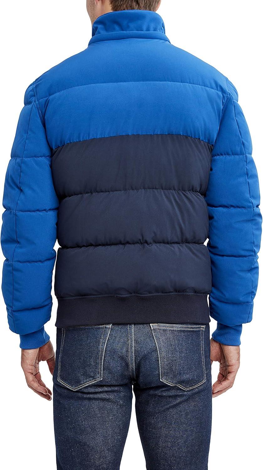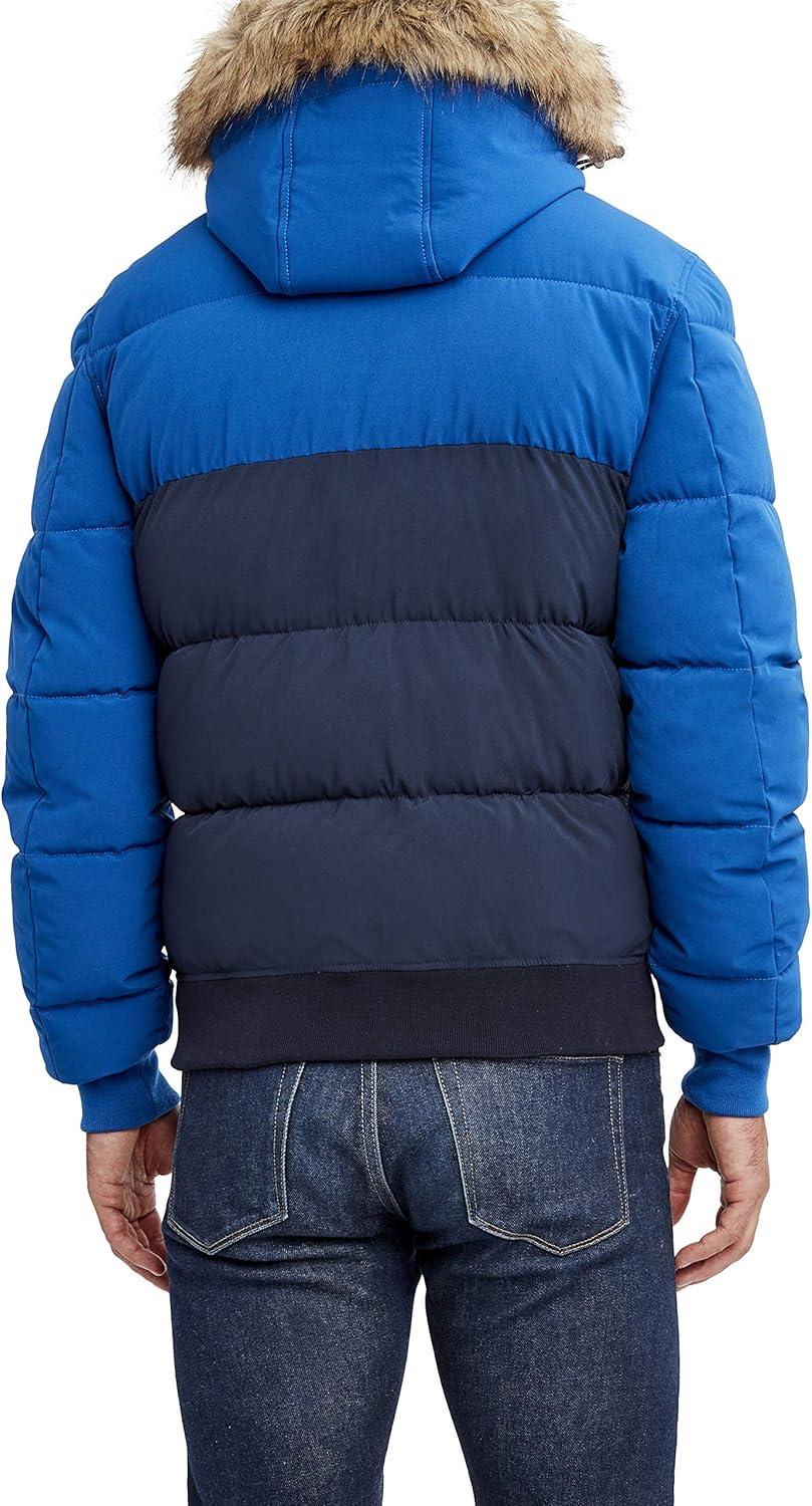 Nautica Men’s Midweight Faux Memory Puffer Jacket –Adjustable Hood Insulated Quilted Winter Coat(Blu/Nvy)