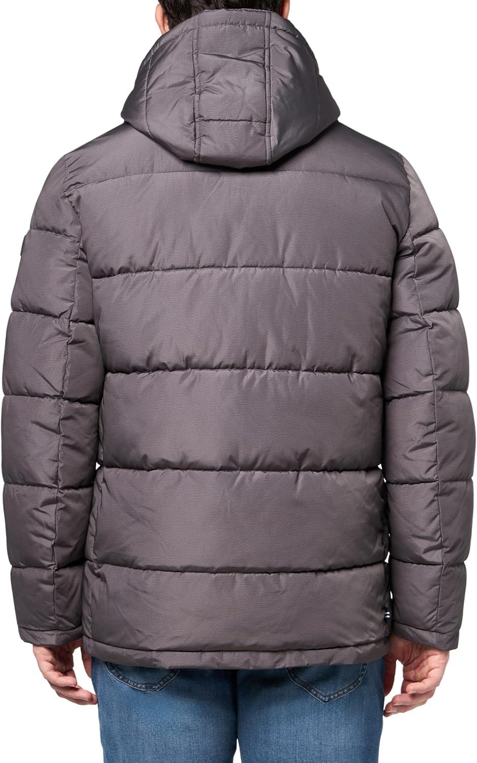 Nautica Men’s Midweight Quilted Faux Memory Puffer Jacket –Adjustable Hood Insulated Winter Coat(Heather Grey)