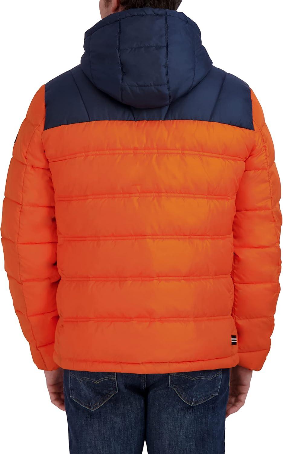 Nautica Men’s Midweight Quilted Faux Memory Puffer Jacket –Adjustable Hood Insulated Winter Coat(Orange)