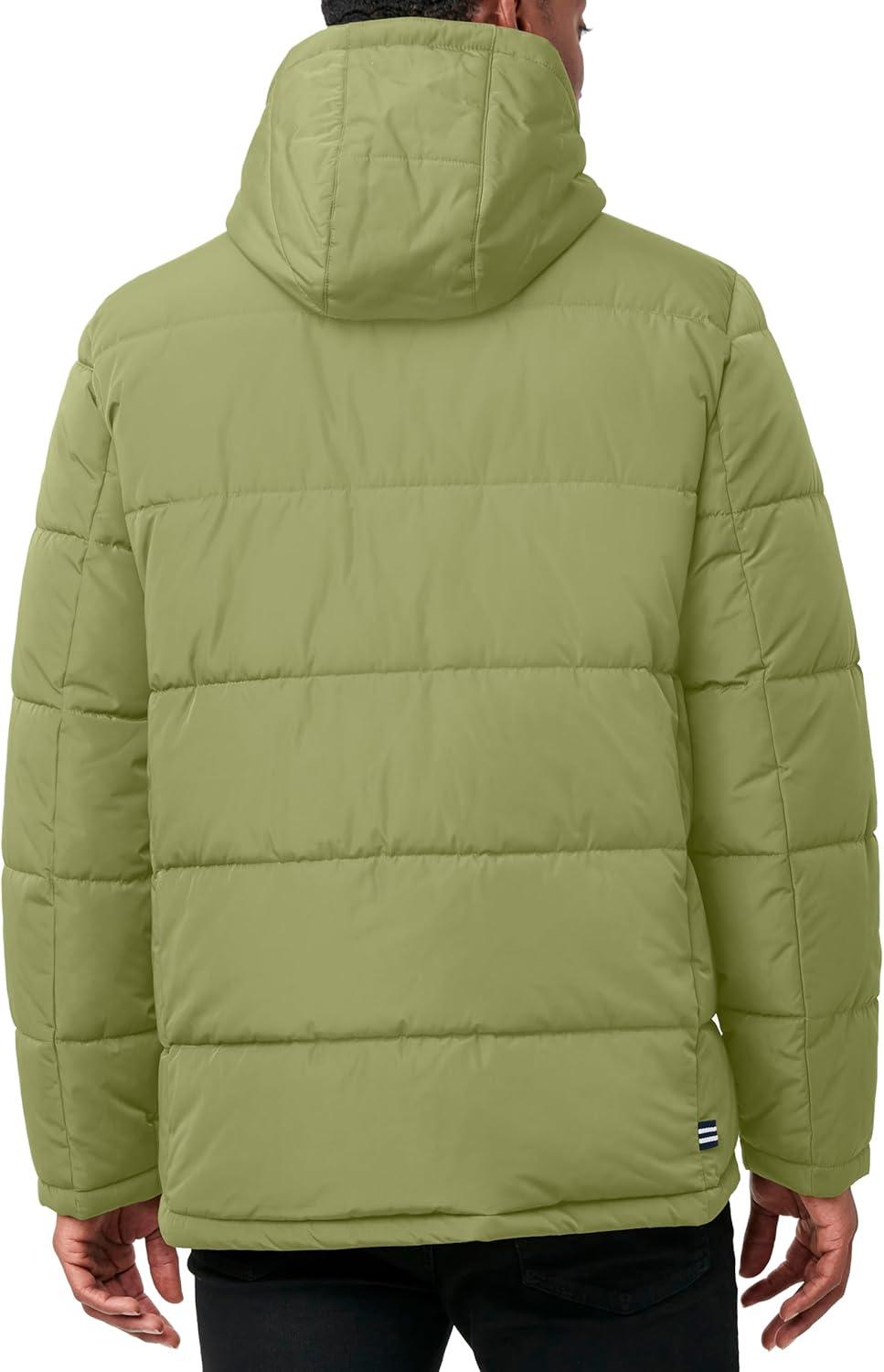 Nautica Men’s Midweight Quilted Faux Memory Puffer Jacket –Adjustable Hood Insulated Winter Coat(Pale Olive)