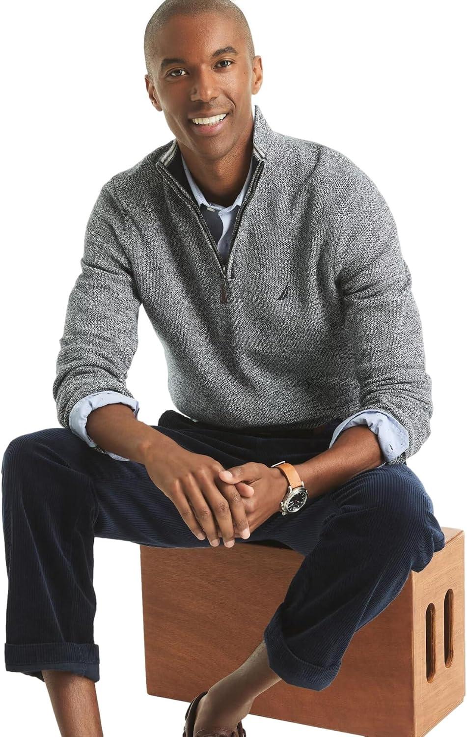 Nautica Men’s Navtech Quarter-Zip Sweater(Marled Grey Heather)