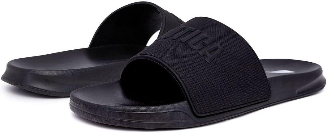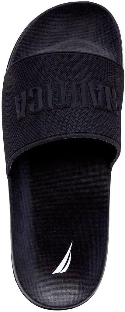 Nautica Men's Open Toe Slide Sandals - Comfortable Indoor & Outdoor Shower Slippers(Black-lasal)