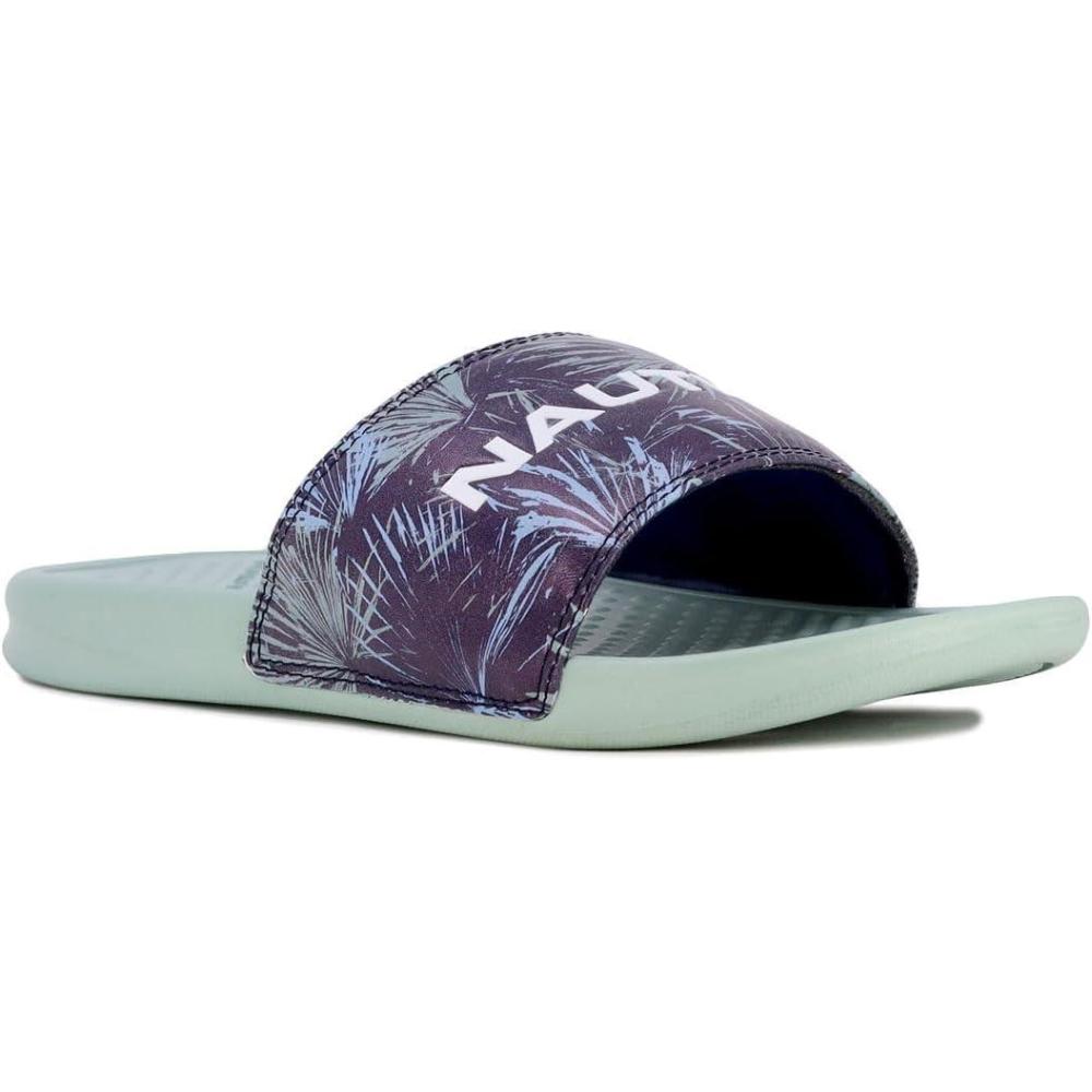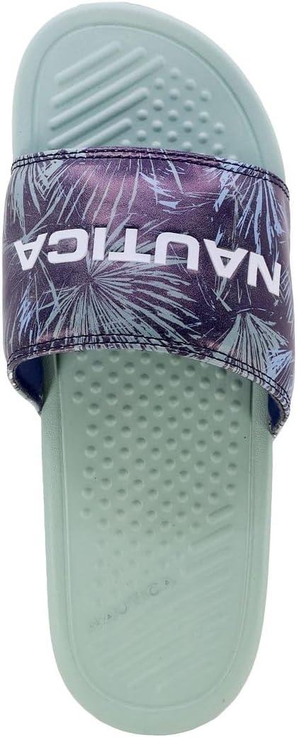 Nautica Men's Open Toe Slide Sandals - Comfortable Indoor & Outdoor Shower Slippers(Midnight Palms Rivo)