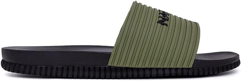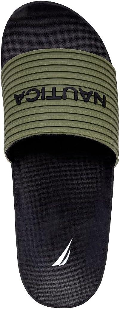 Nautica Men’s Open Toe Slide Sandals – Comfortable Indoor & Outdoor Shower Slippers(Olive Black-mauro)