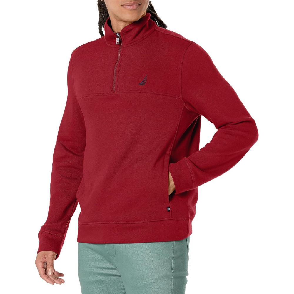 Made from soft sueded fleece, this quarter-zip sweatshirt features side-seam pockets and Nautica's J-class icon at the front.