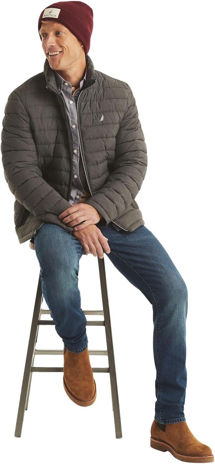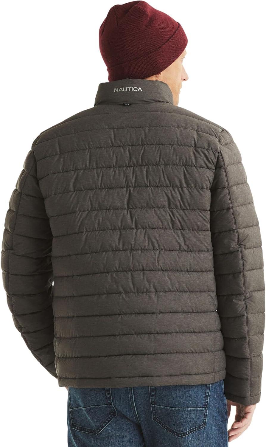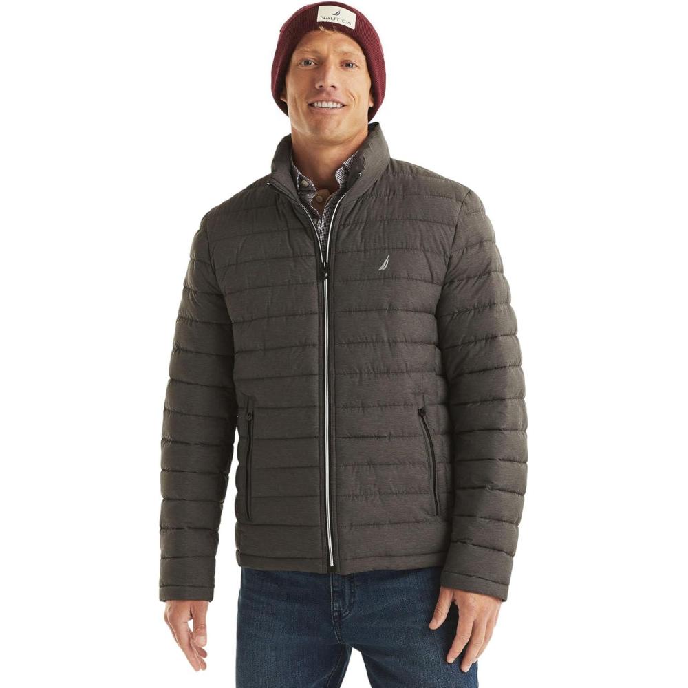 Nautica Men's Reversible Quilted Puffer Jacket –Midweight Mechanical Stretch Winter Coat(Charcoal Grey Heather)