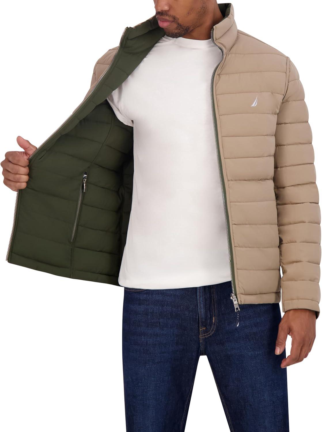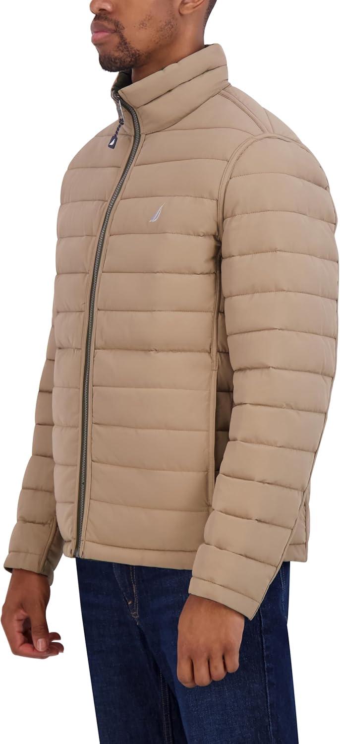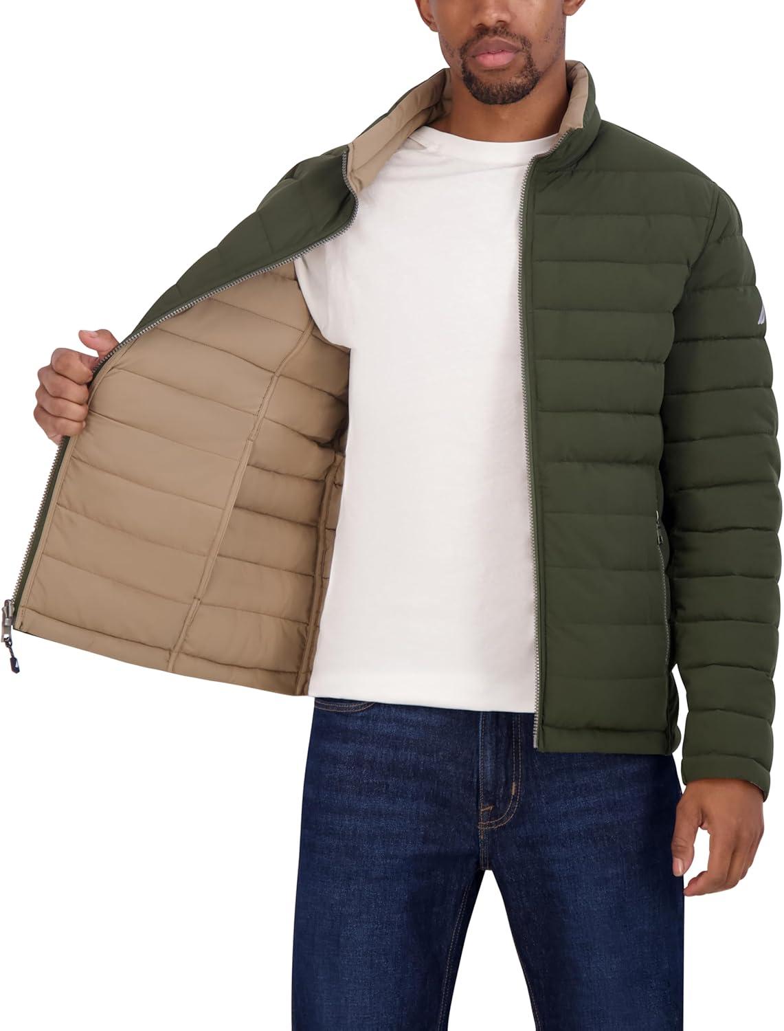 Nautica Men’s Reversible Quilted Puffer Jacket –Midweight Mechanical Stretch Winter Coat(Dkforest)