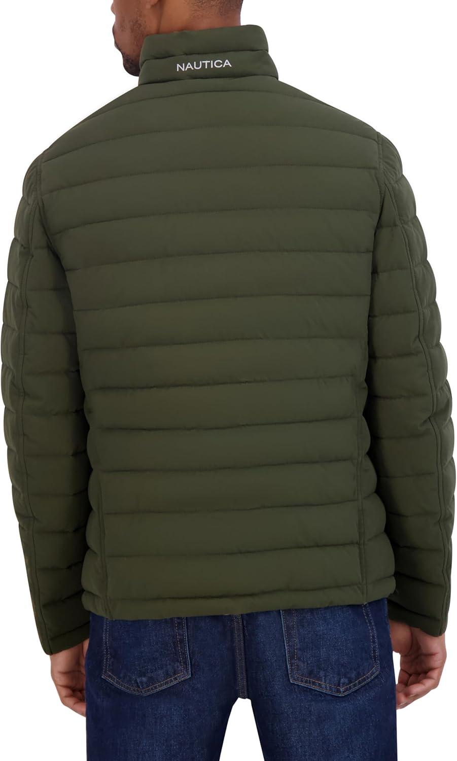 imageNautica Mens Reversible Quilted Puffer Jacket Midweight Mechanical Stretch Winter CoatDkforest