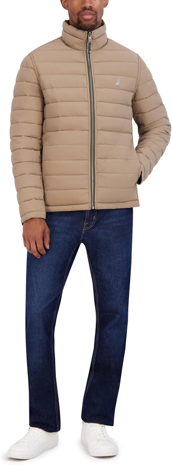 Nautica Men's Reversible Quilted Puffer Jacket –Midweight Mechanical Stretch Winter Coat(Dkforest)