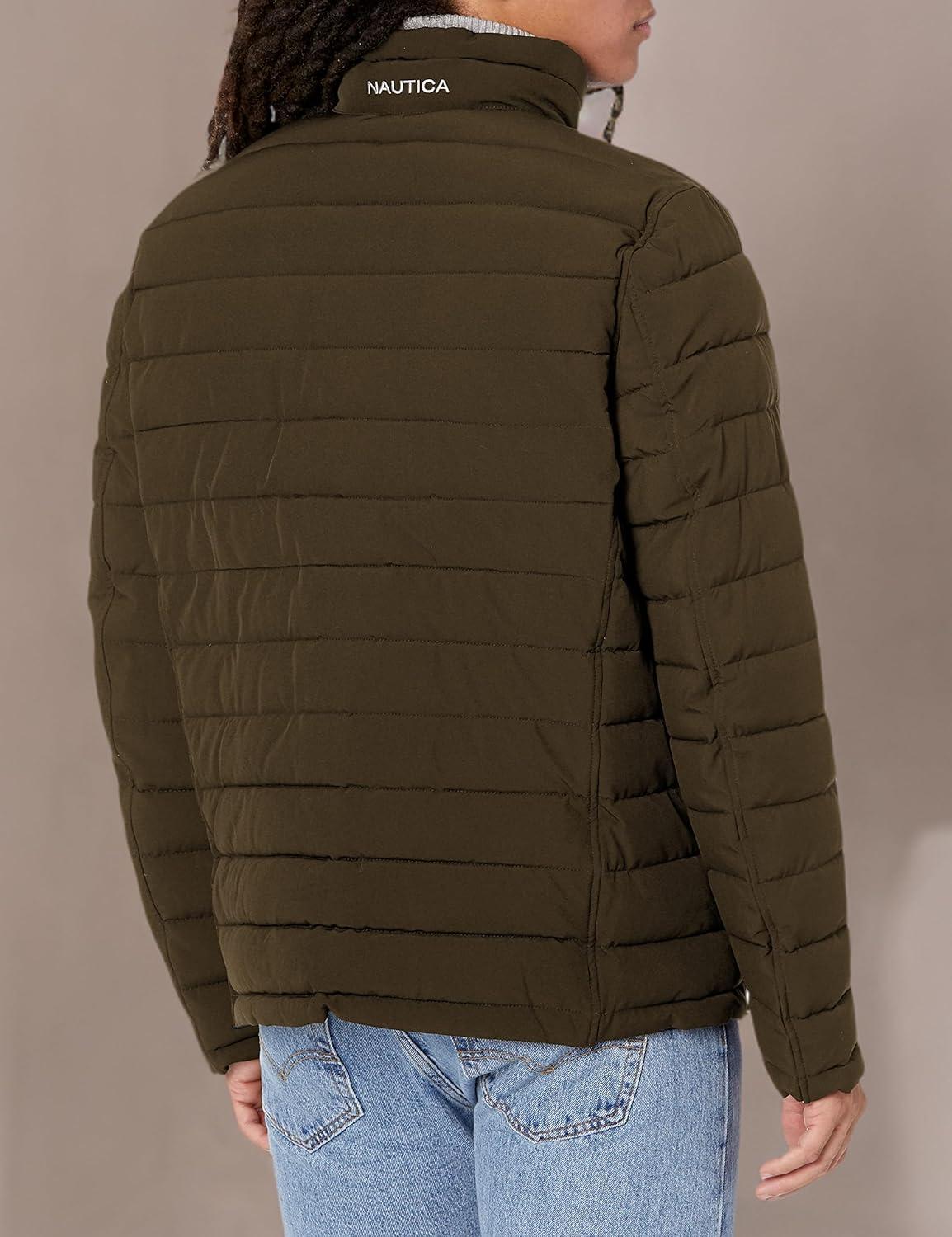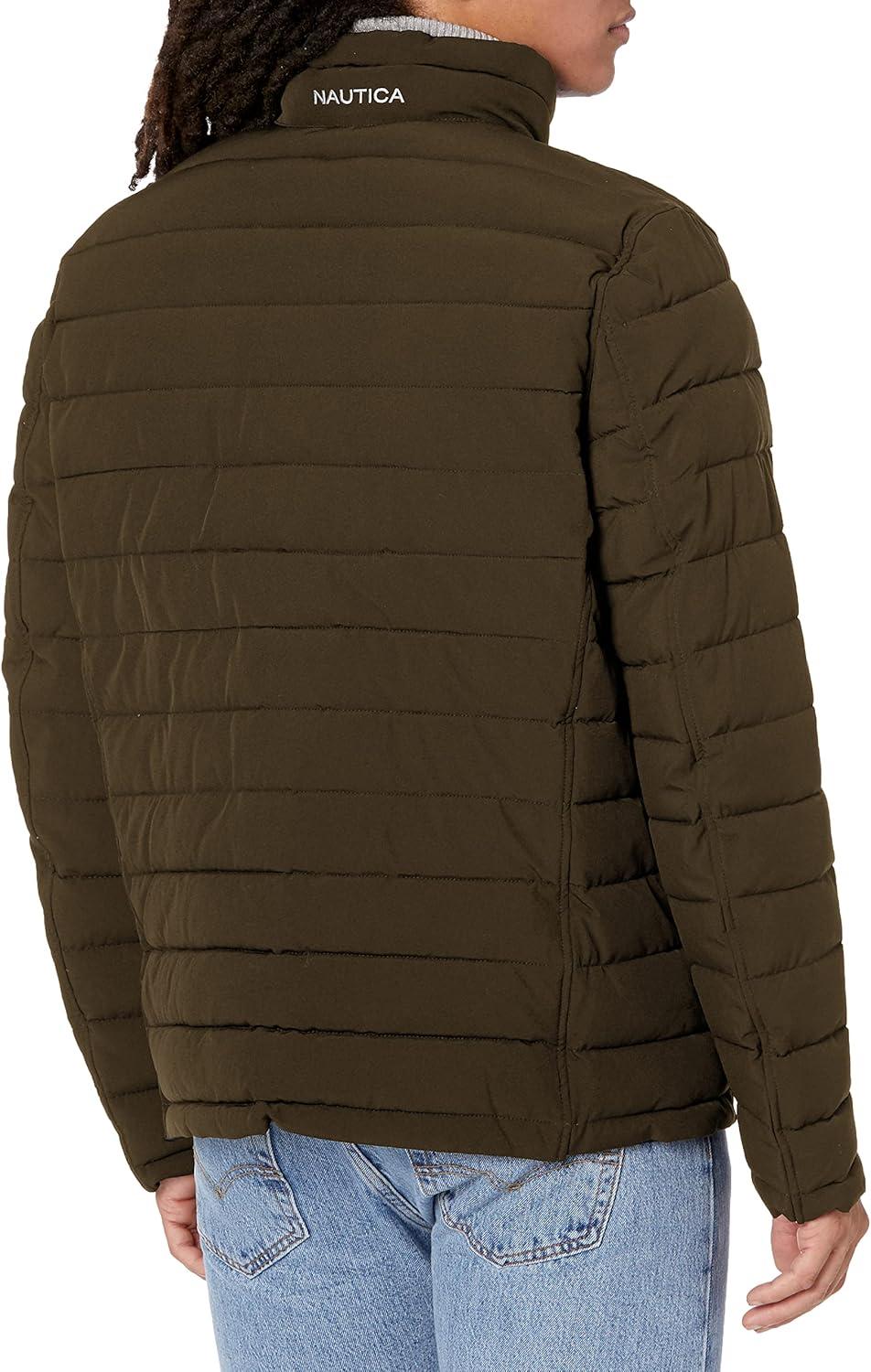Nautica Men's Reversible Quilted Puffer Jacket –Midweight Mechanical Stretch Winter Coat(Forest)