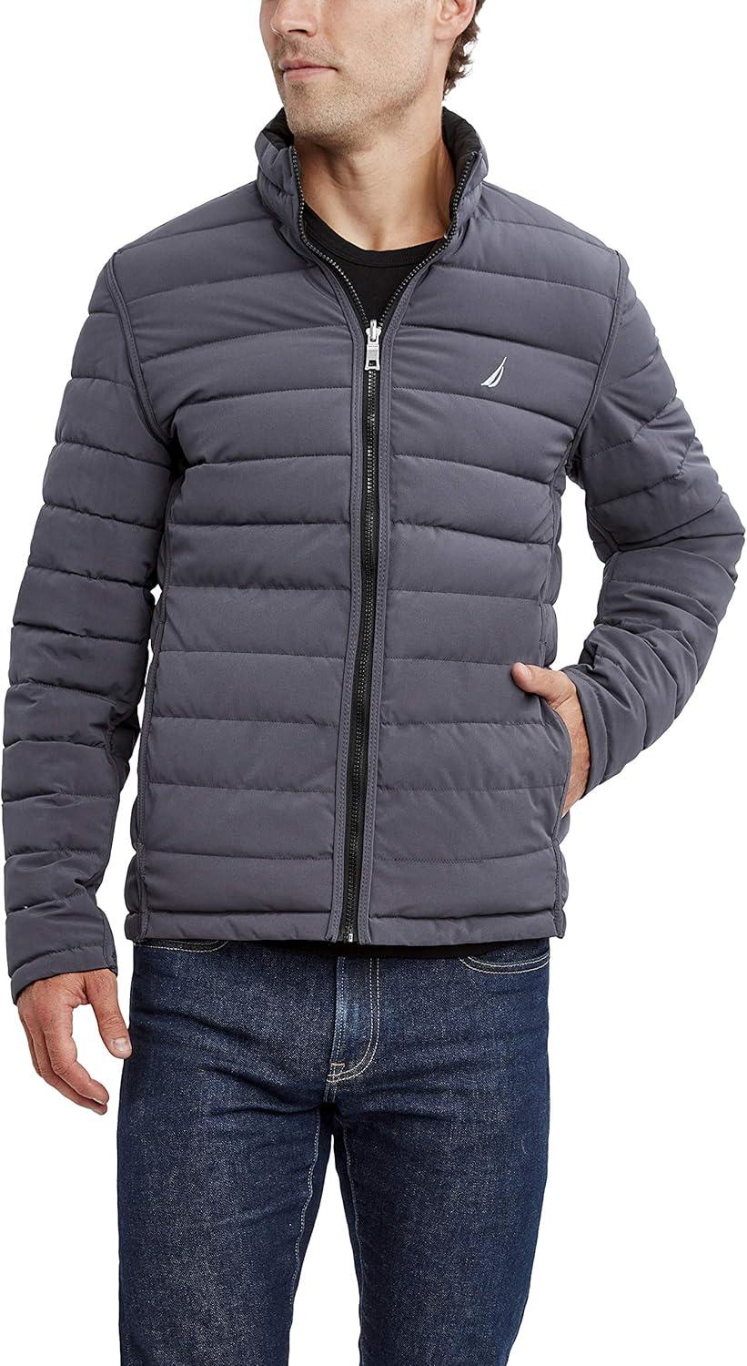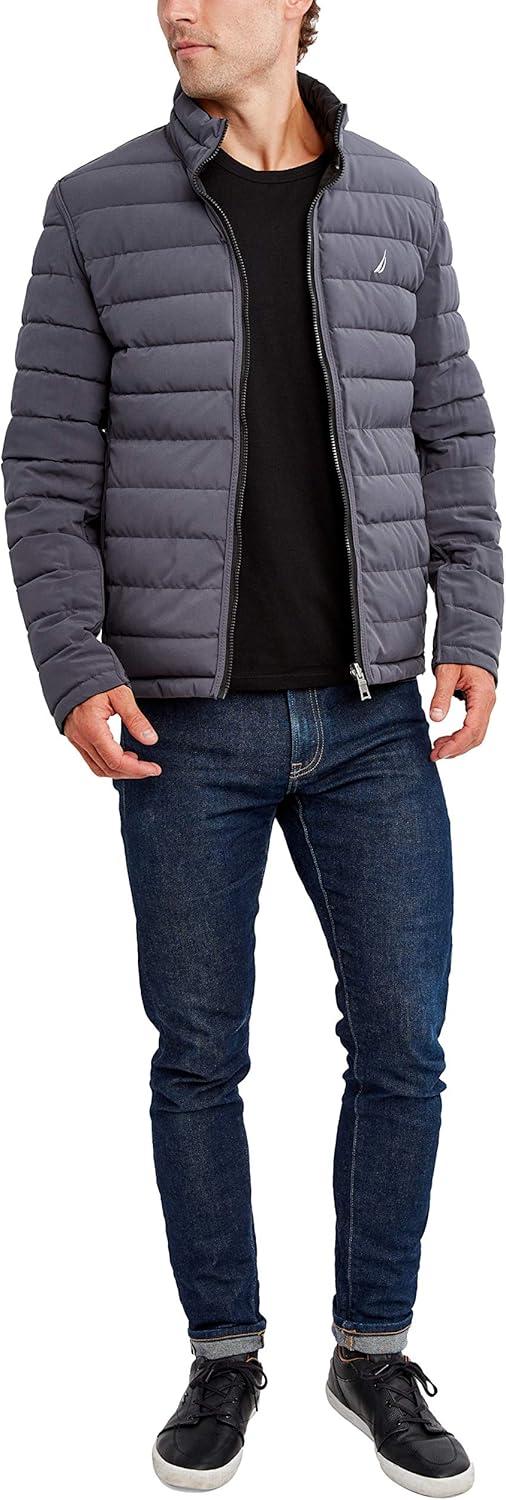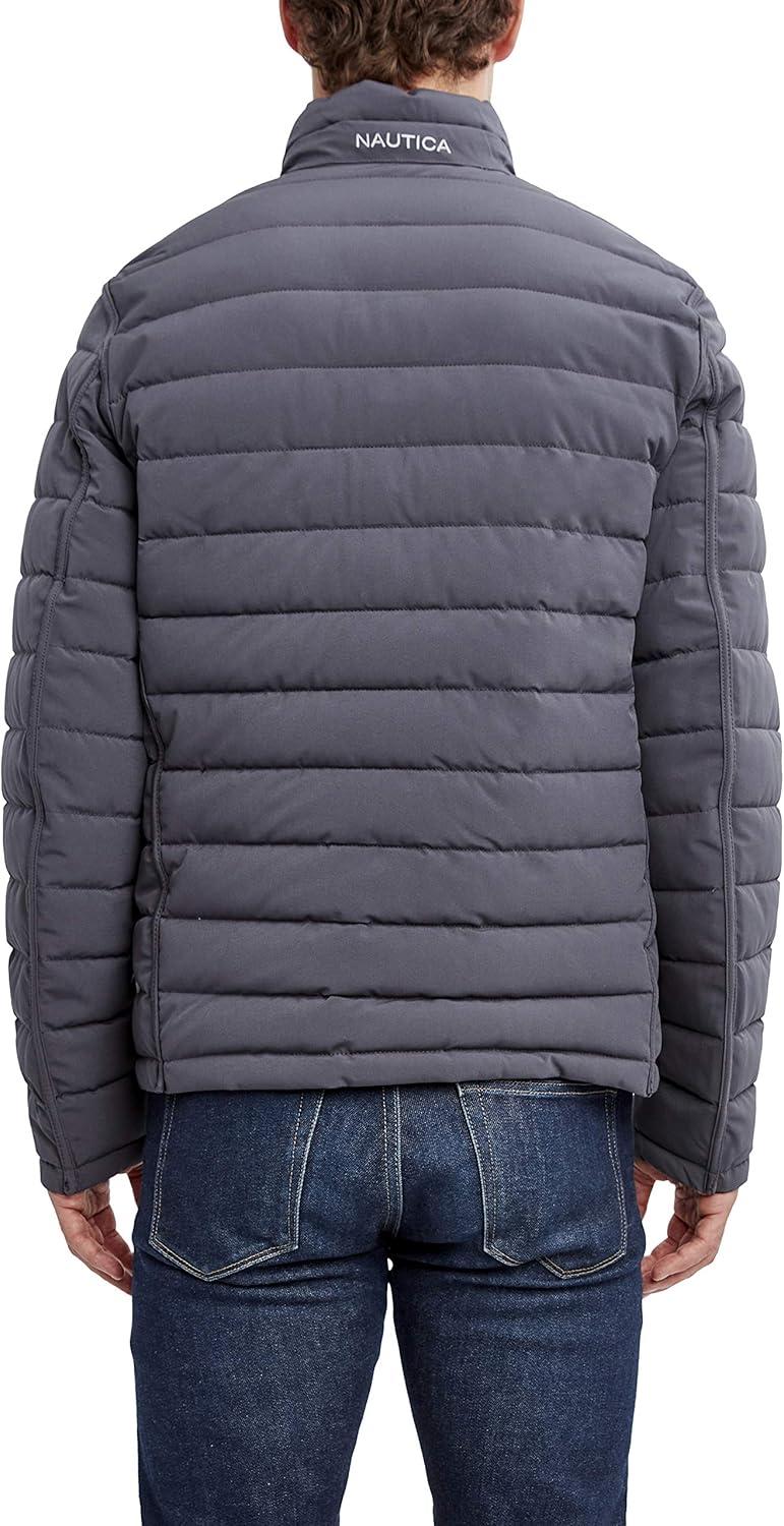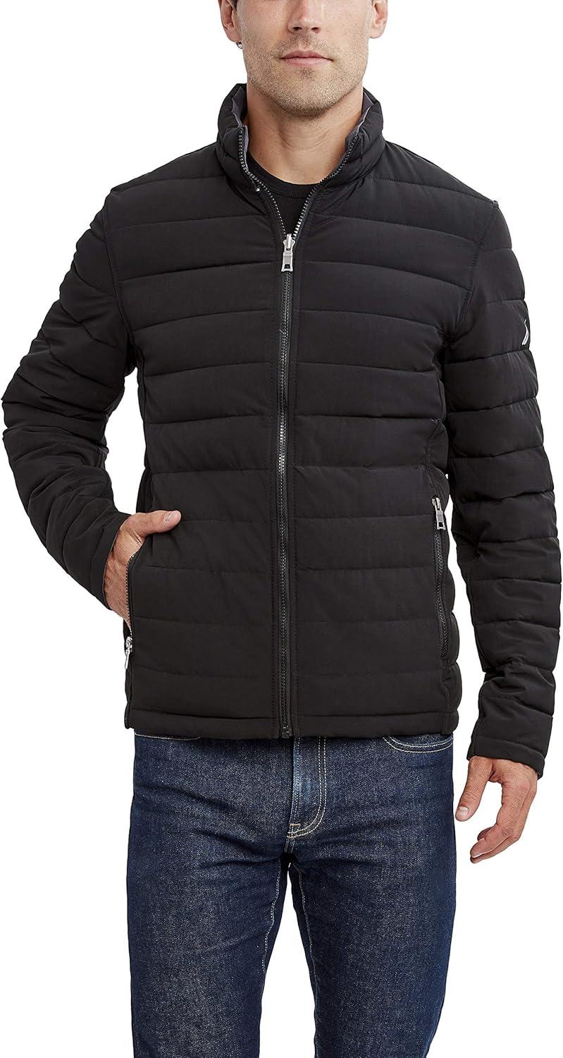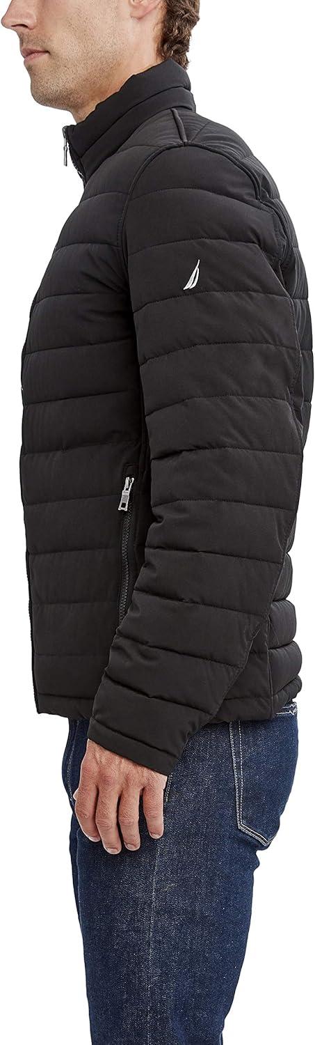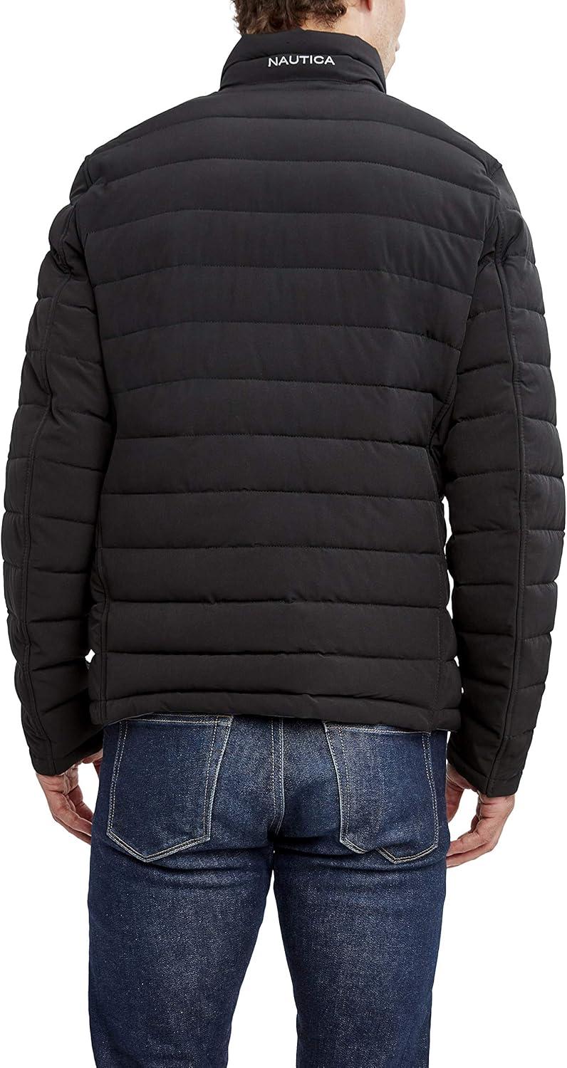 Nautica Men's Reversible Quilted Puffer Jacket –Midweight Mechanical Stretch Winter Coat(Vintage Black)