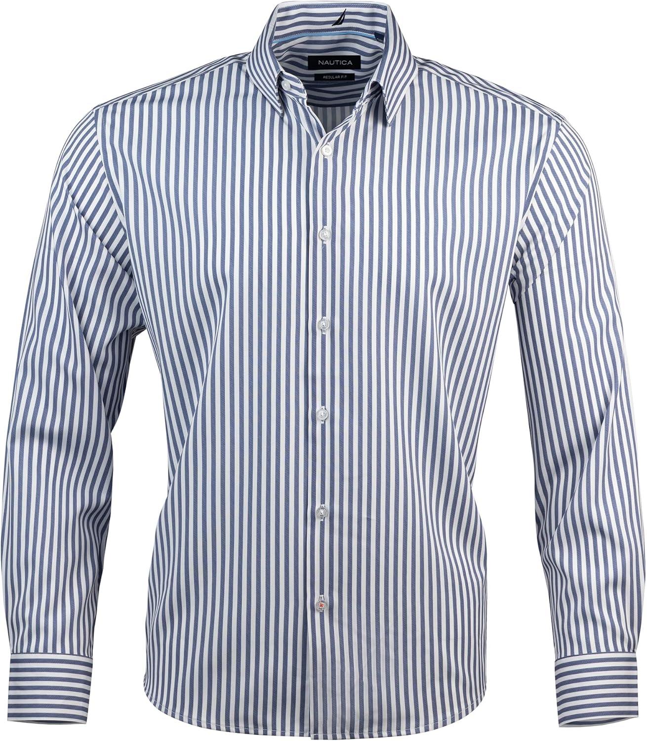 Elevate your style with this Nautica men's dress shirt, a versatile addition to any wardrobe. This button down long sleeve dress shirt features a sleek slim fit and is made from wrinkle-resistant fabric, ensuring you look sharp and professional all day, whether at work, an interview, or a formal event. Designed for comfort and ease, the breathable fabric offers all-day wearability, while the shirt remains machine washable for hassle-free care. Available in various sizes, this Nautica shirt is perfect for men of all sizes looking for a comfortable yet stylish option. Whether you're opting for a classic solid color, plaid, or striped pattern, this shirt pairs effortlessly with slacks or jeans. Perfect for work, business meetings, or casual outings, it’s an essential addition to any wardrobe and a great gift idea for Father's Day, Christmas, or special occasions. Size Guide: Small (S): Neck Size 14-14.5 — Sleeve Length 32-33 Medium (M): Neck Size 15-15.5 — Sleeve Length 32-33 Medium Tall (MT): Neck Size 15-15.5 — Sleeve Length 34-35 Large (L): Neck Size 16-16.5 — Sleeve Length 32-33 Large Tall (LT): Neck Size 16-16.5 — Sleeve Length 34-35 Extra Large (XL): Neck Size 17-17.5 — Sleeve Length 34-35