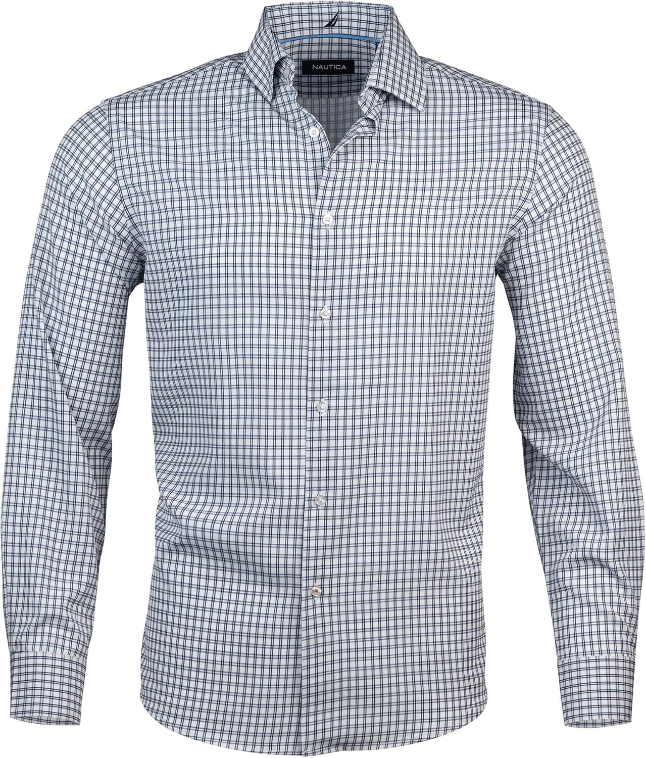 Elevate your style with this Nautica men's dress shirt, a versatile addition to any wardrobe. This button down long sleeve dress shirt features a sleek slim fit and is made from wrinkle-resistant fabric, ensuring you look sharp and professional all day, whether at work, an interview, or a formal event. Designed for comfort and ease, the breathable fabric offers all-day wearability, while the shirt remains machine washable for hassle-free care. Available in various sizes, this Nautica shirt is perfect for men of all sizes looking for a comfortable yet stylish option. Whether you're opting for a classic solid color, plaid, or striped pattern, this shirt pairs effortlessly with slacks or jeans. Perfect for work, business meetings, or casual outings, it’s an essential addition to any wardrobe and a great gift idea for Father's Day, Christmas, or special occasions. Size Guide: Small (S): Neck Size 14-14.5 — Sleeve Length 32-33 Medium (M): Neck Size 15-15.5 — Sleeve Length 32-33 Medium Tall (MT): Neck Size 15-15.5 — Sleeve Length 34-35 Large (L): Neck Size 16-16.5 — Sleeve Length 32-33 Large Tall (LT): Neck Size 16-16.5 — Sleeve Length 34-35 Extra Large (XL): Neck Size 17-17.5 — Sleeve Length 34-35
