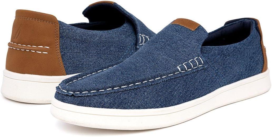 Nautica Men’s Slip-On Loafers Casual Moc Toe Sneakers Boat Shoes Slipper for Men – Lightweight & Comfortable – Derwin(Blue Denim)