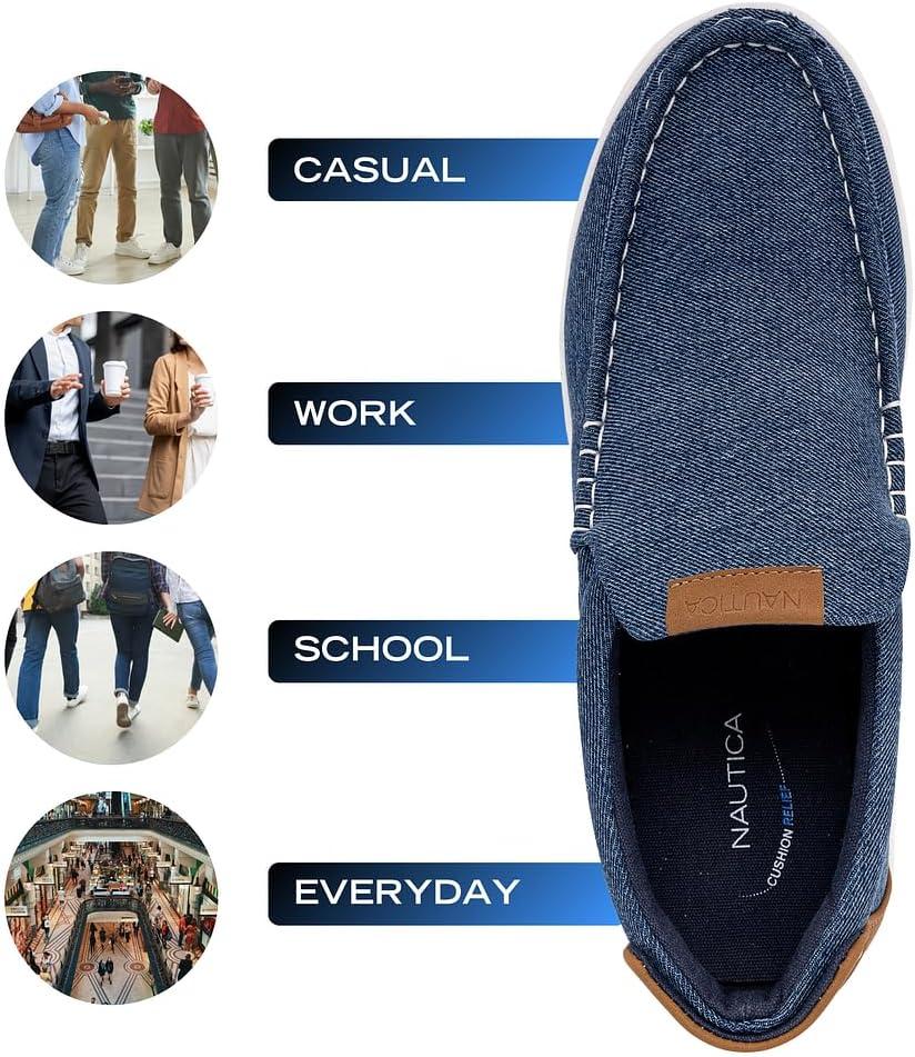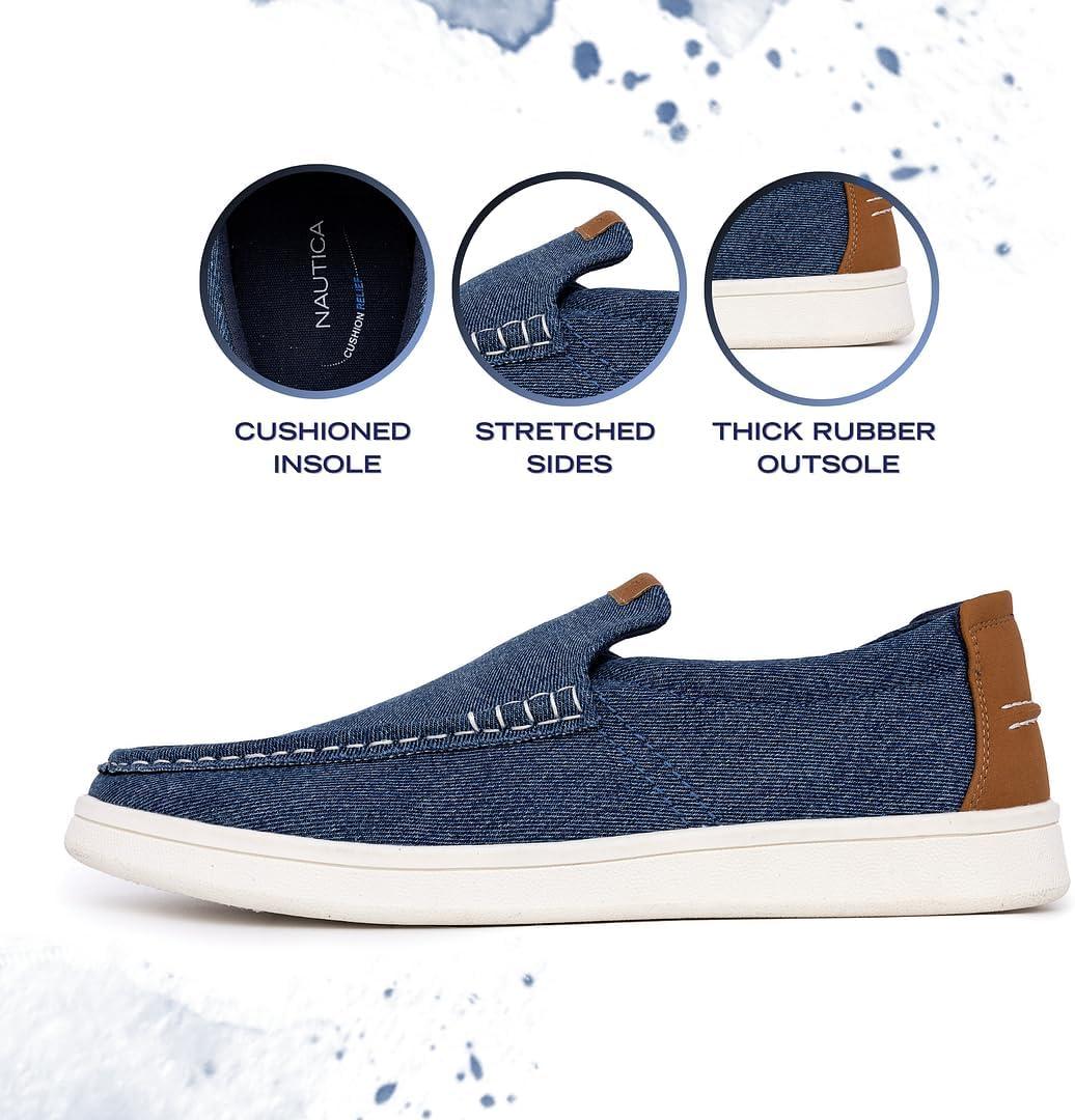 Nautica Men's Slip-On Loafers Casual Moc Toe Sneakers Boat Shoes Slipper for Men – Lightweight & Comfortable - Derwin(Blue Denim)