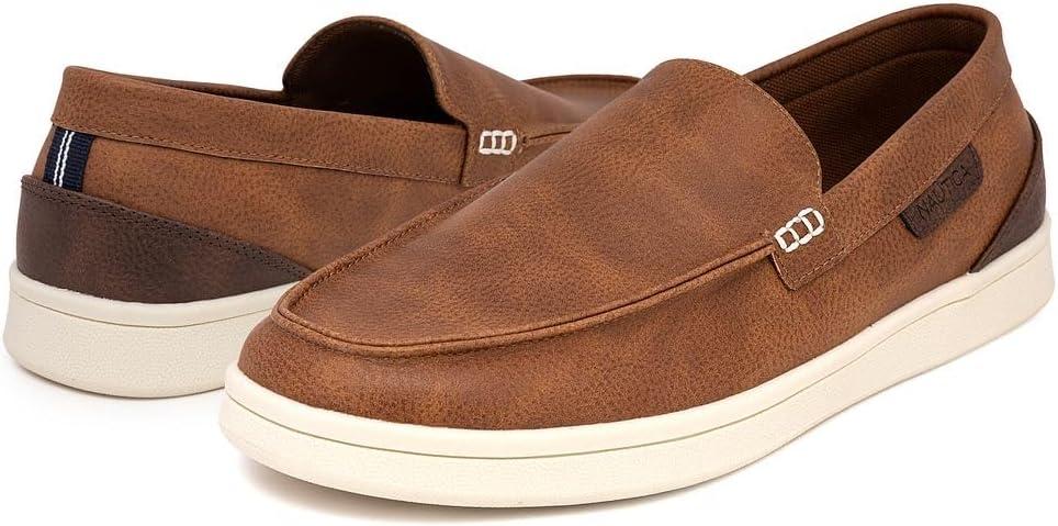 Nautica Men’s Slip-On Loafers Casual Moc Toe Sneakers Boat Shoes Slipper for Men – Lightweight & Comfortable – Derwin(Brown)