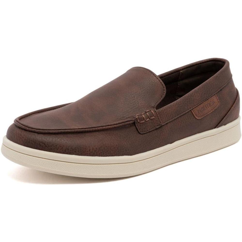 Nautica Men’s Slip-On Loafers Casual Moc Toe Sneakers Boat Shoes Slipper for Men – Lightweight & Comfortable – Derwin(Brown)