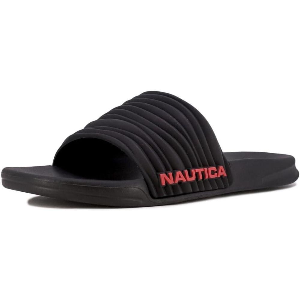 Nautica Men’s Slip-On Slide Sandals(Black Loch)