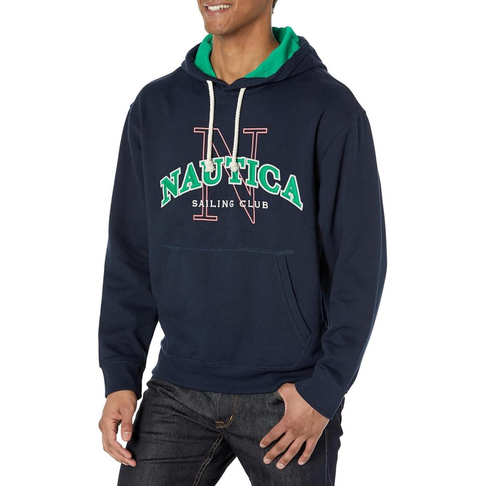 This warm pullover hoodie is just what your cool-weather wardrobe needs. It’s made from Sustainably Crafted fleece-lined cotton-knit and features a drawcord hood, kangaroo pocket, and Nautica's logo at the chest.