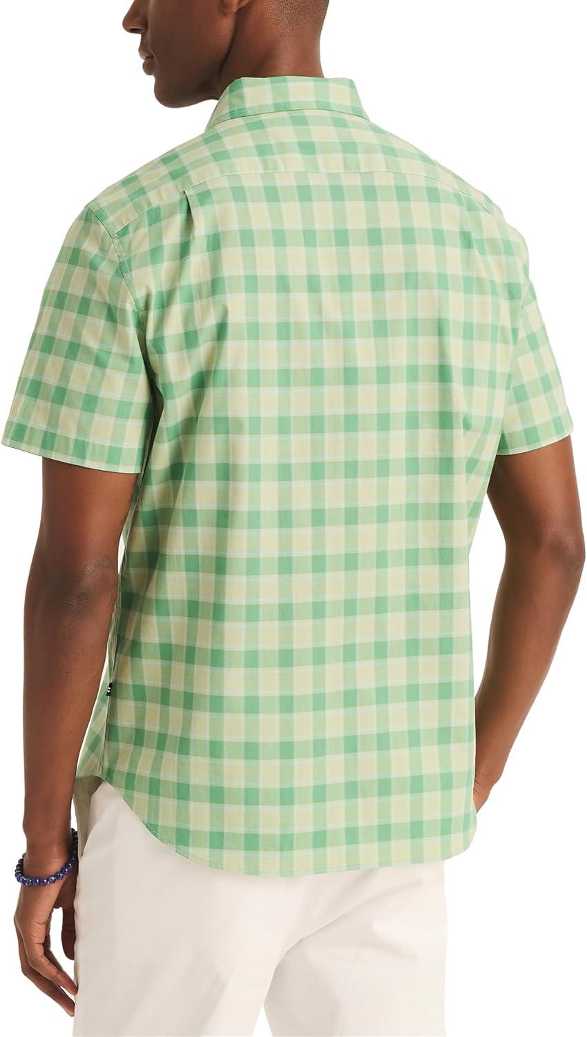 Made from Sustainably Crafted cotton-knit, this plaid short-sleeve shirt is designed with a stay-in-place button-down collar and Nautica's iconic J-class logo at the chest patch pocket.