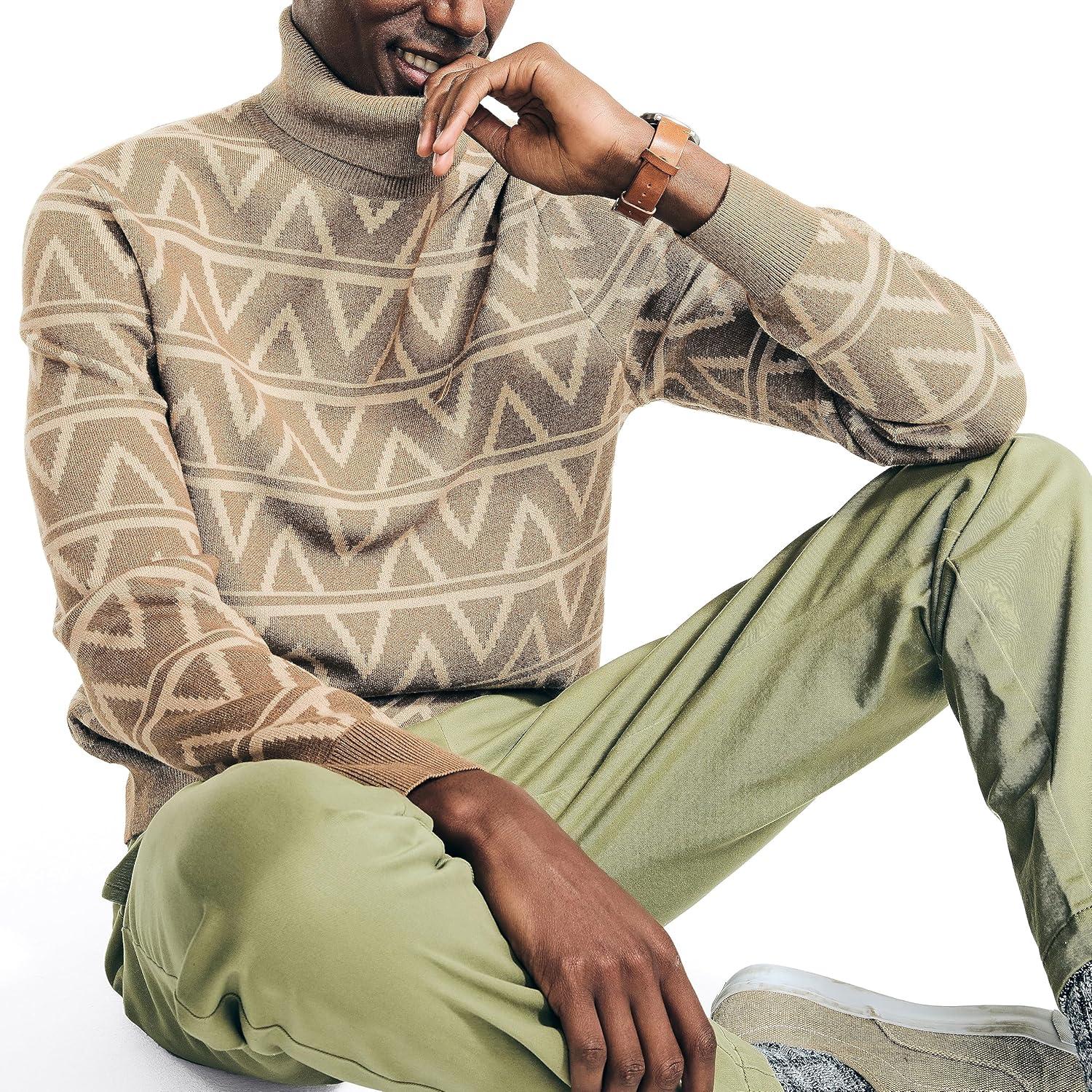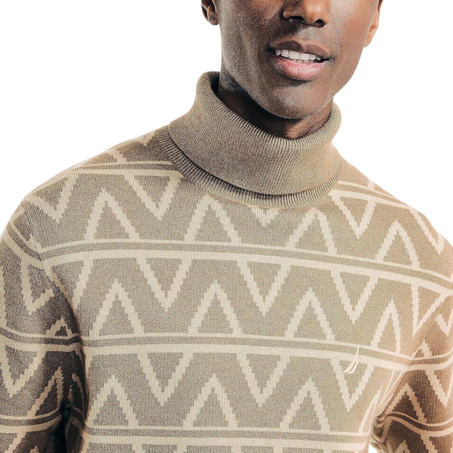 Reach for this cozy turtleneck sweater when there's a chill in the air. Made of a Sustainably Crafted wool-knit blend, this sweater has a birdseye jacquard design and Nautica's J-class icon at the chest.