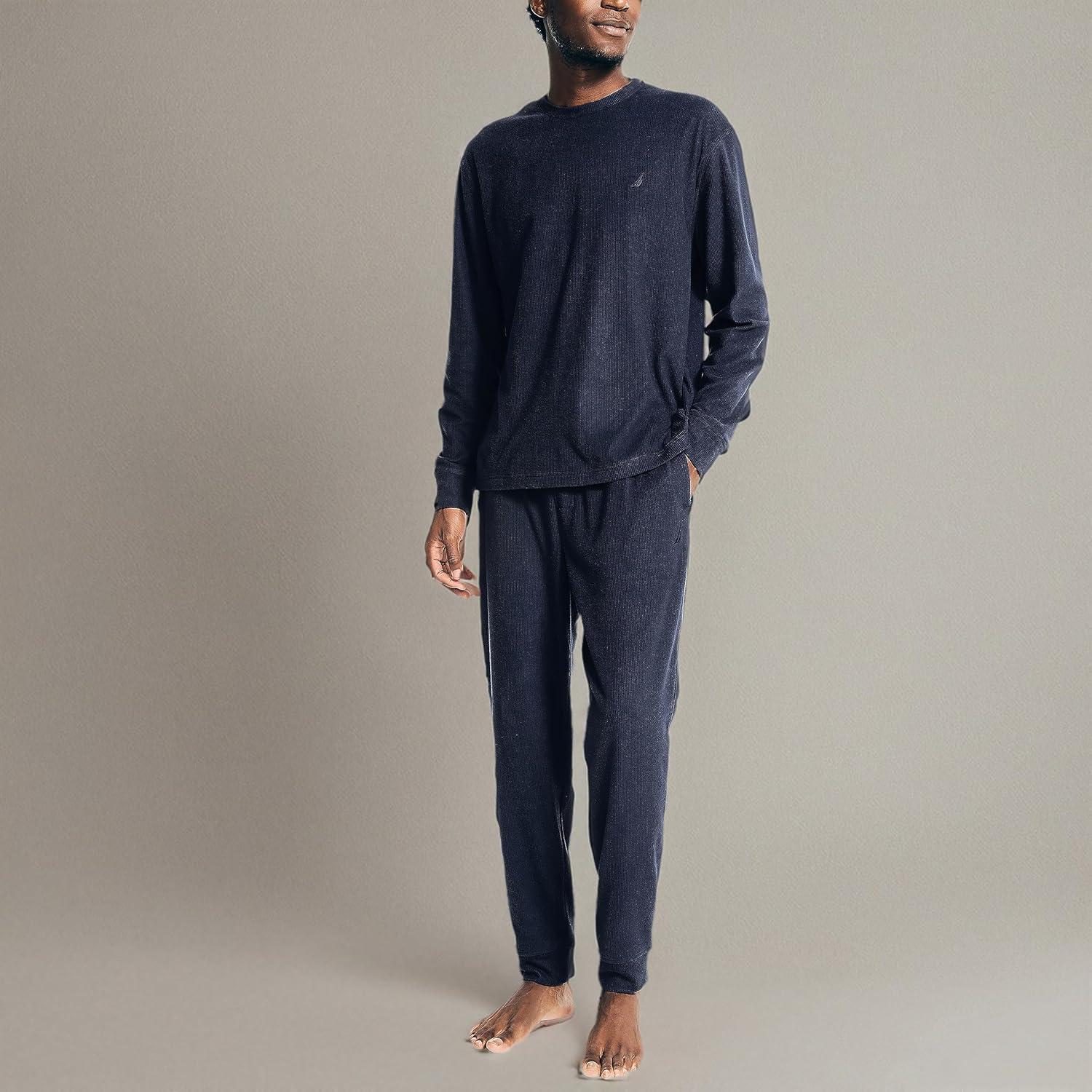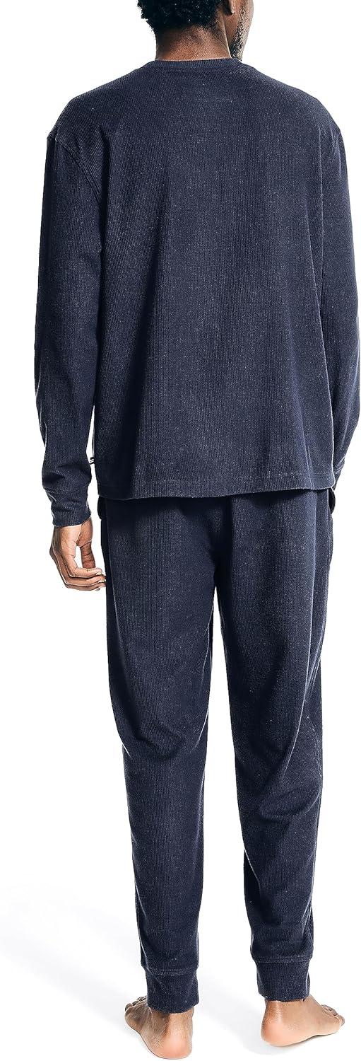 End the day on a high note with this pajama set made from warm and cozy waffle-texture cotton-knit. Cut for a vintage fit, this set features a long sleeve t-shirt and matching elastic-drawstring pant.