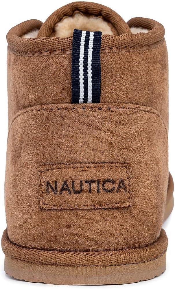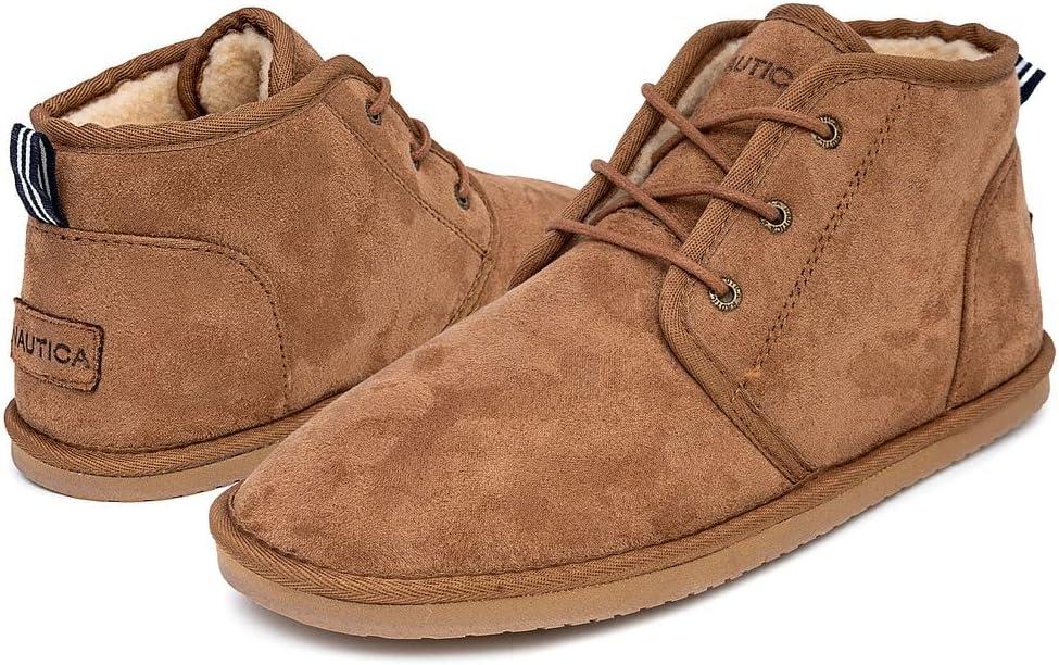 imageNautica Mens Winter Ankle Boots  Sherpa Lined Lace Up Slippers for Cold Weather Warm Indoor Outdoor House Shoes Comfortable Cozy BootiesTan