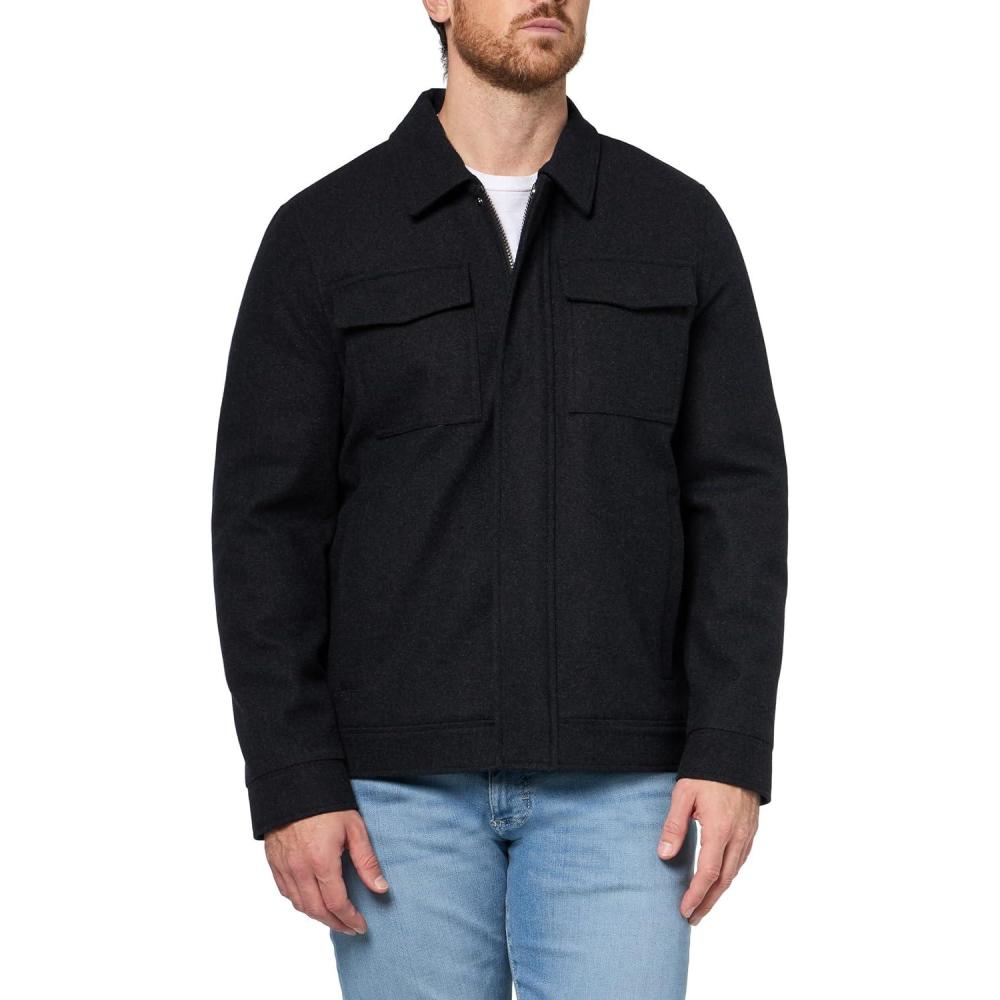 imageNautica Mens Wool Jacket  Diamond Quilted Lining Polyfill Insulation Snap ampamp Zip ClosureOnyx