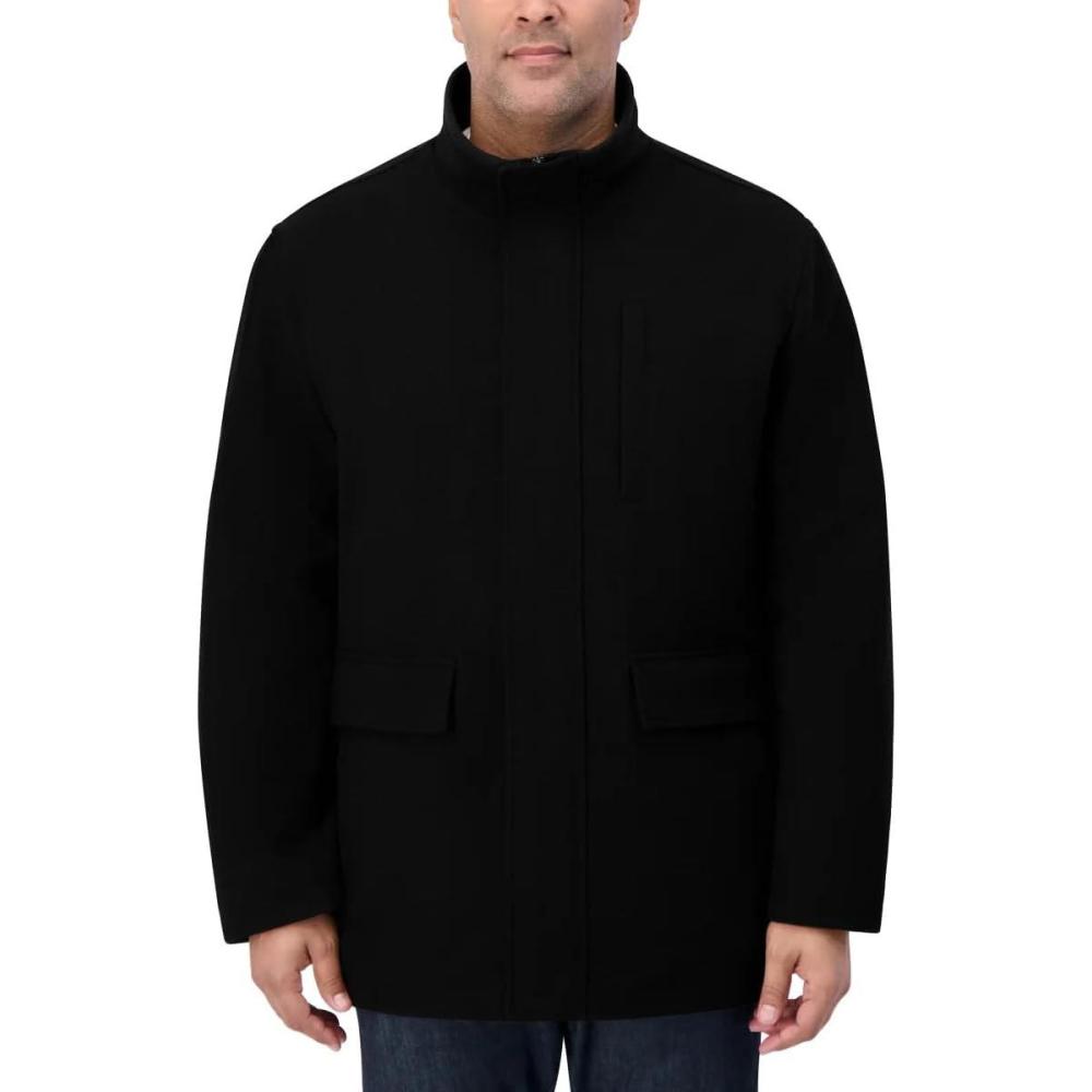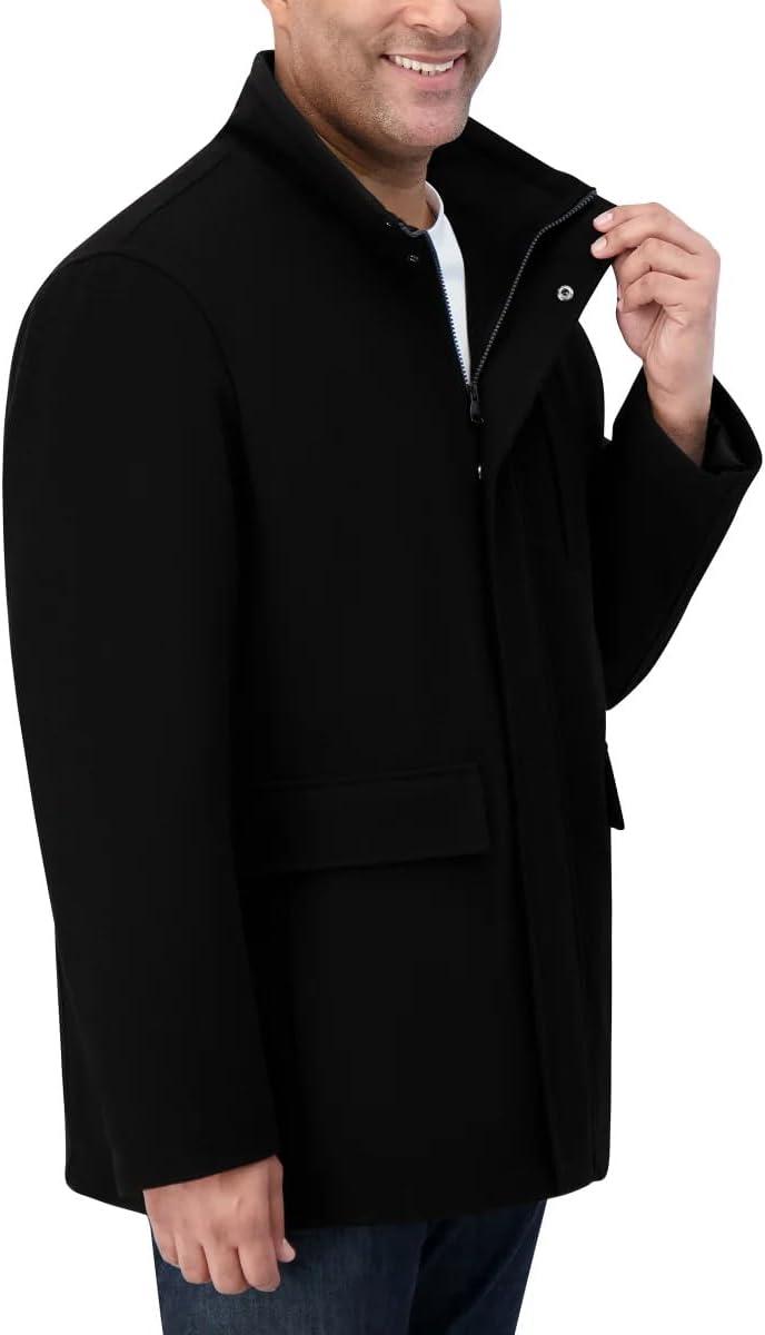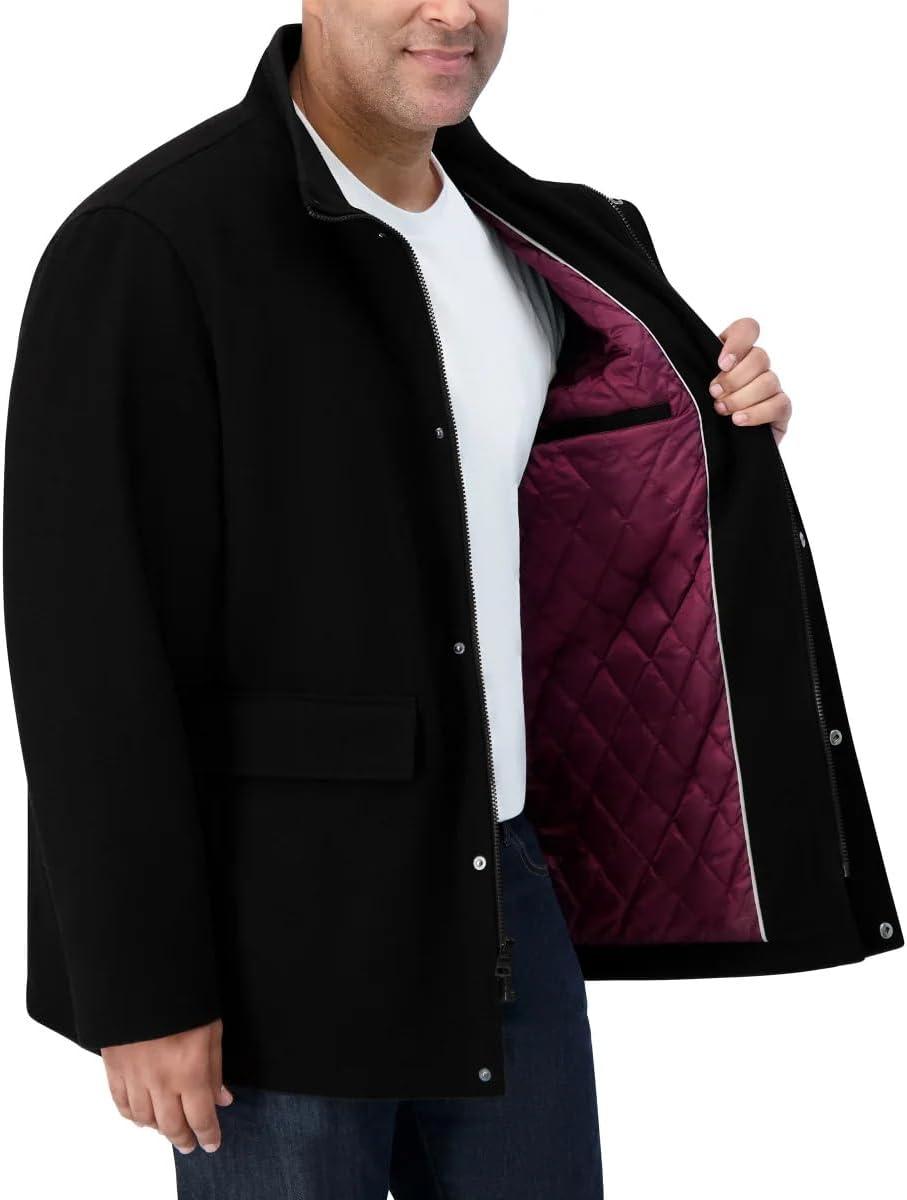 Nautica Men's Wool Jacket – Diamond Quilted Lining, Polyfill Insulation, Snap & Zip Closure(Onyx)