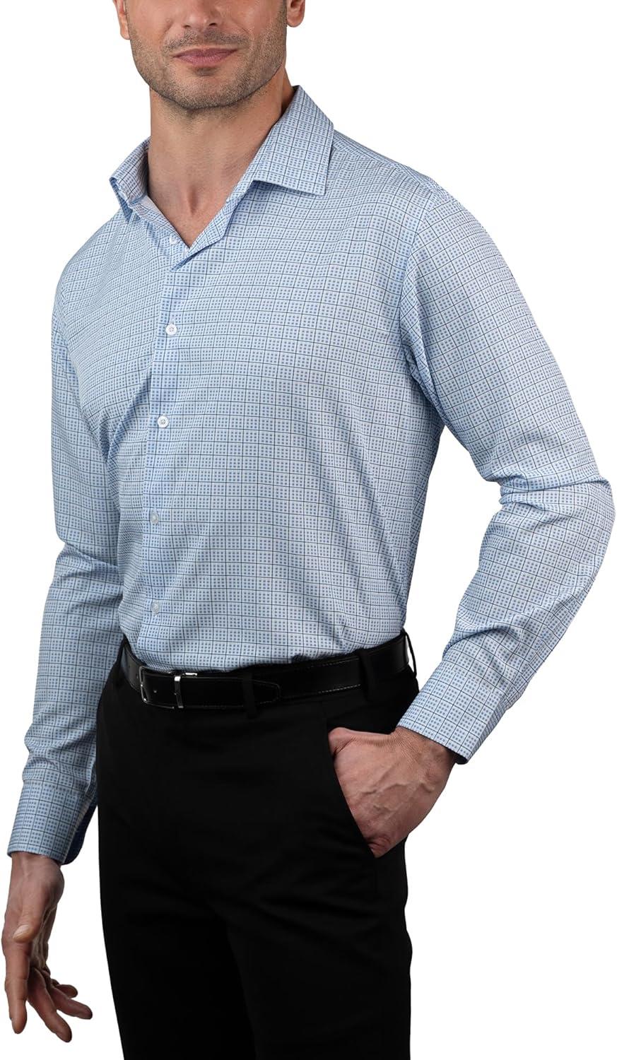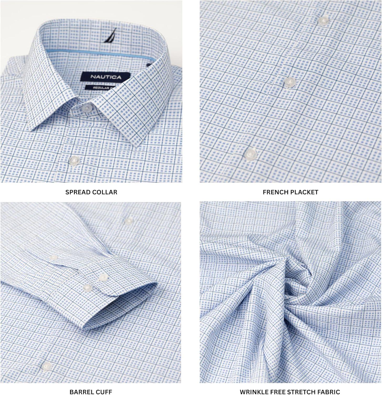 Nautica Regular Fit Long Sleeve Button Down Dress Shirts for Men – Wrinkle Free Long Sleeve Shirt Mens Formal 4-Way Stretch(Blue Multi Plaid)
