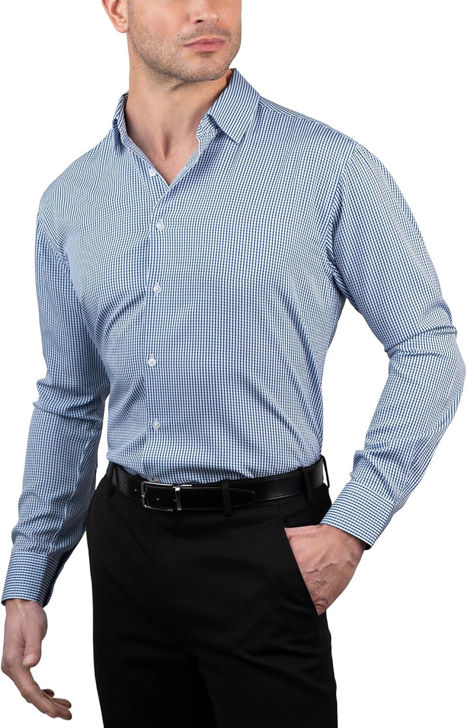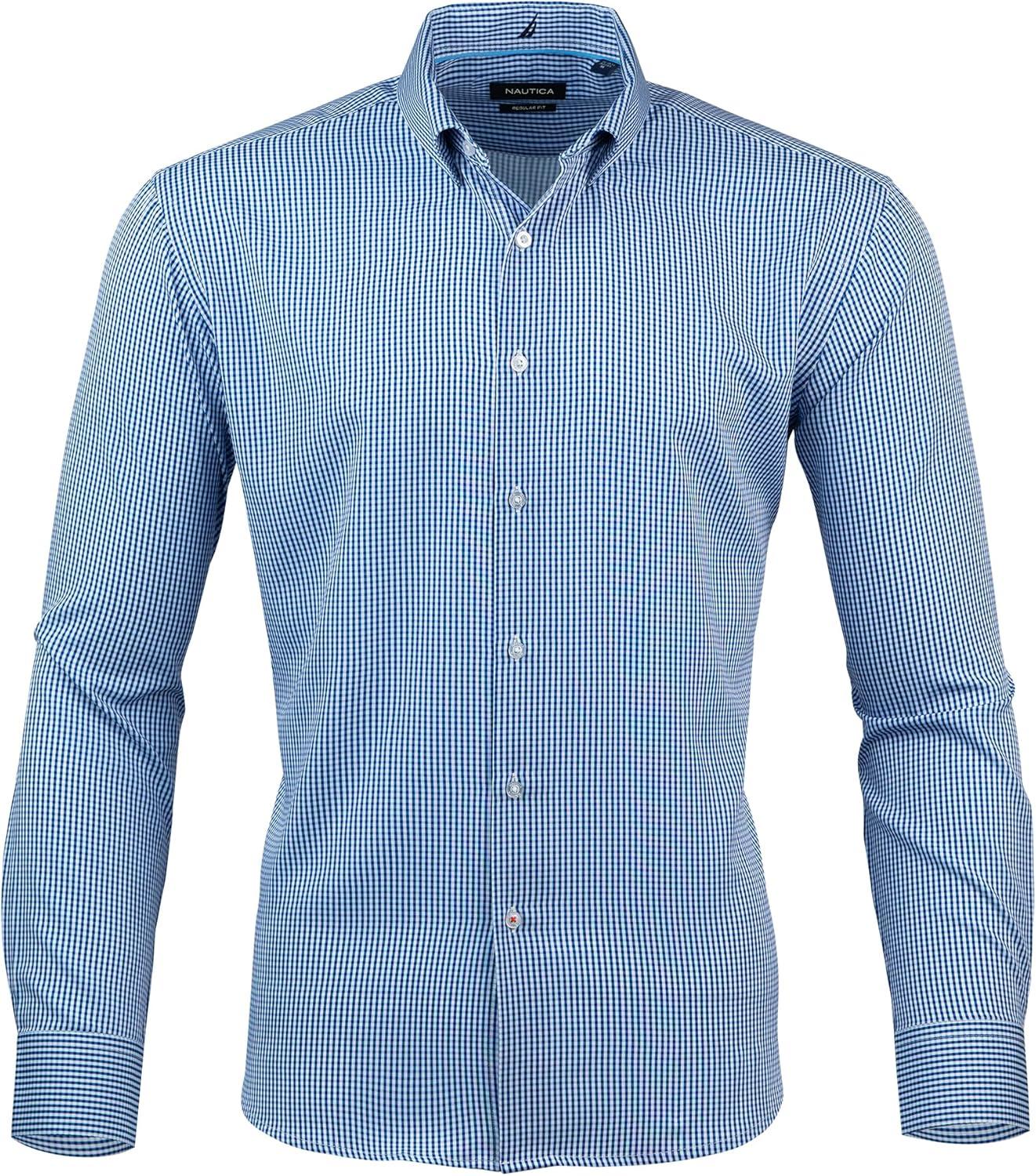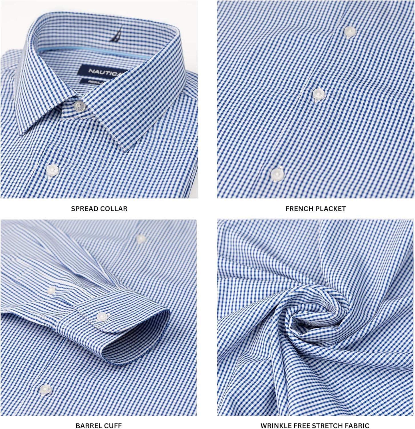 Nautica Regular Fit Long Sleeve Button Down Dress Shirts for Men - Wrinkle Free Long Sleeve Shirt Mens Formal 4-Way Stretch(Blue Plaid)