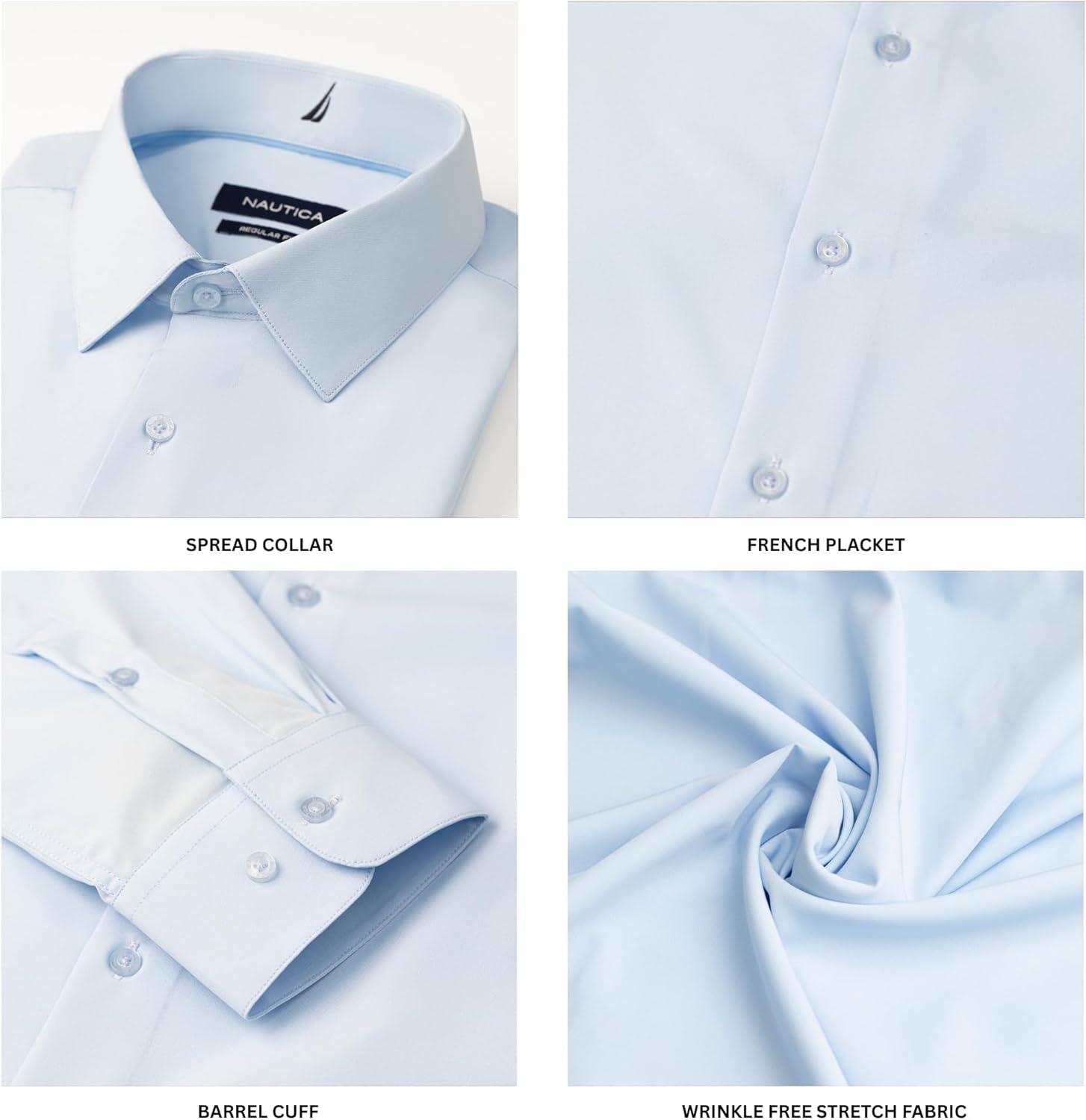 Nautica Regular Fit Long Sleeve Button Down Dress Shirts for Men – Wrinkle Free Long Sleeve Shirt Mens Formal 4-Way Stretch(Blue)