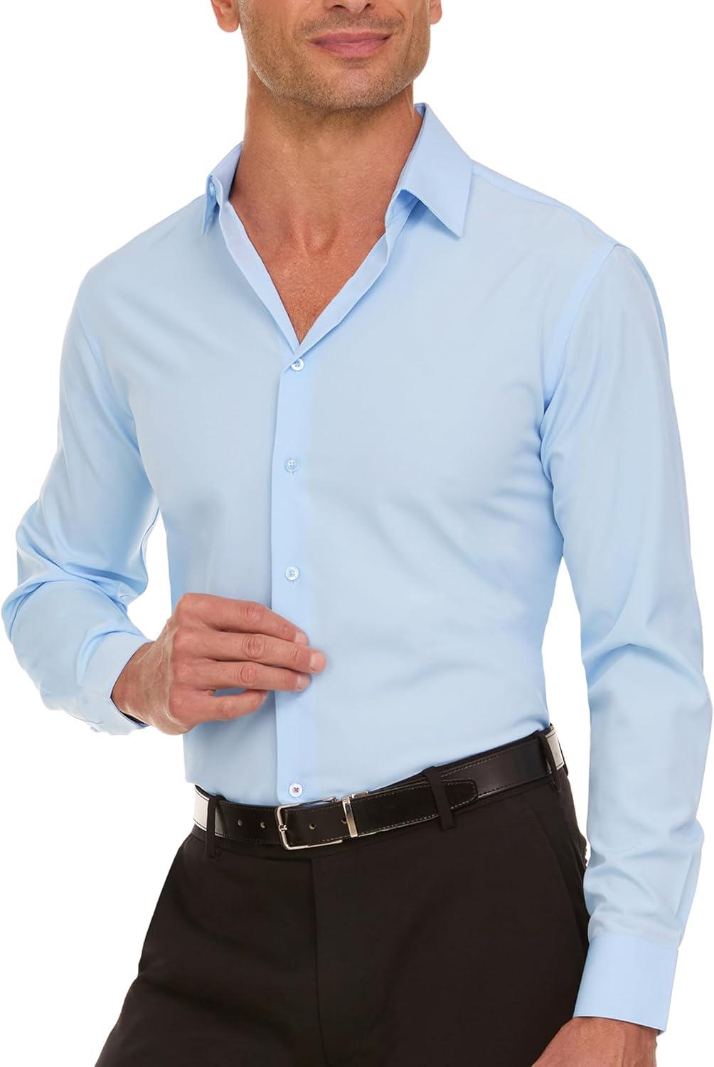 Nautica Regular Fit Long Sleeve Button Down Dress Shirts for Men - Wrinkle Free Long Sleeve Shirt Mens Formal 4-Way Stretch(Blue)