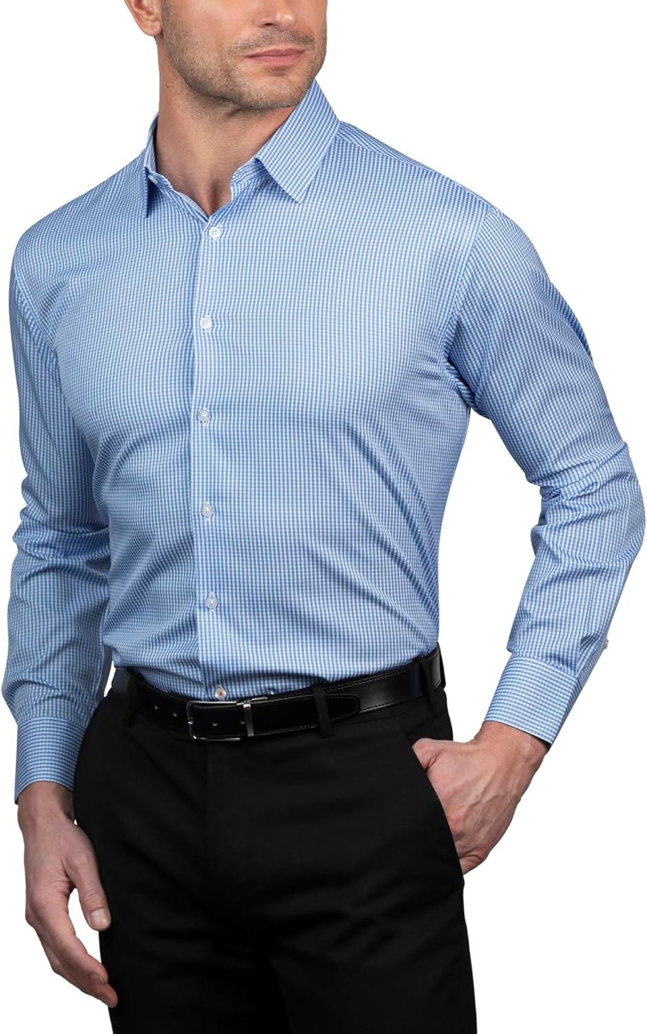 Nautica Regular Fit Long Sleeve Button Down Dress Shirts for Men – Wrinkle Free Long Sleeve Shirt Mens Formal 4-Way Stretch(Light Blue Check)