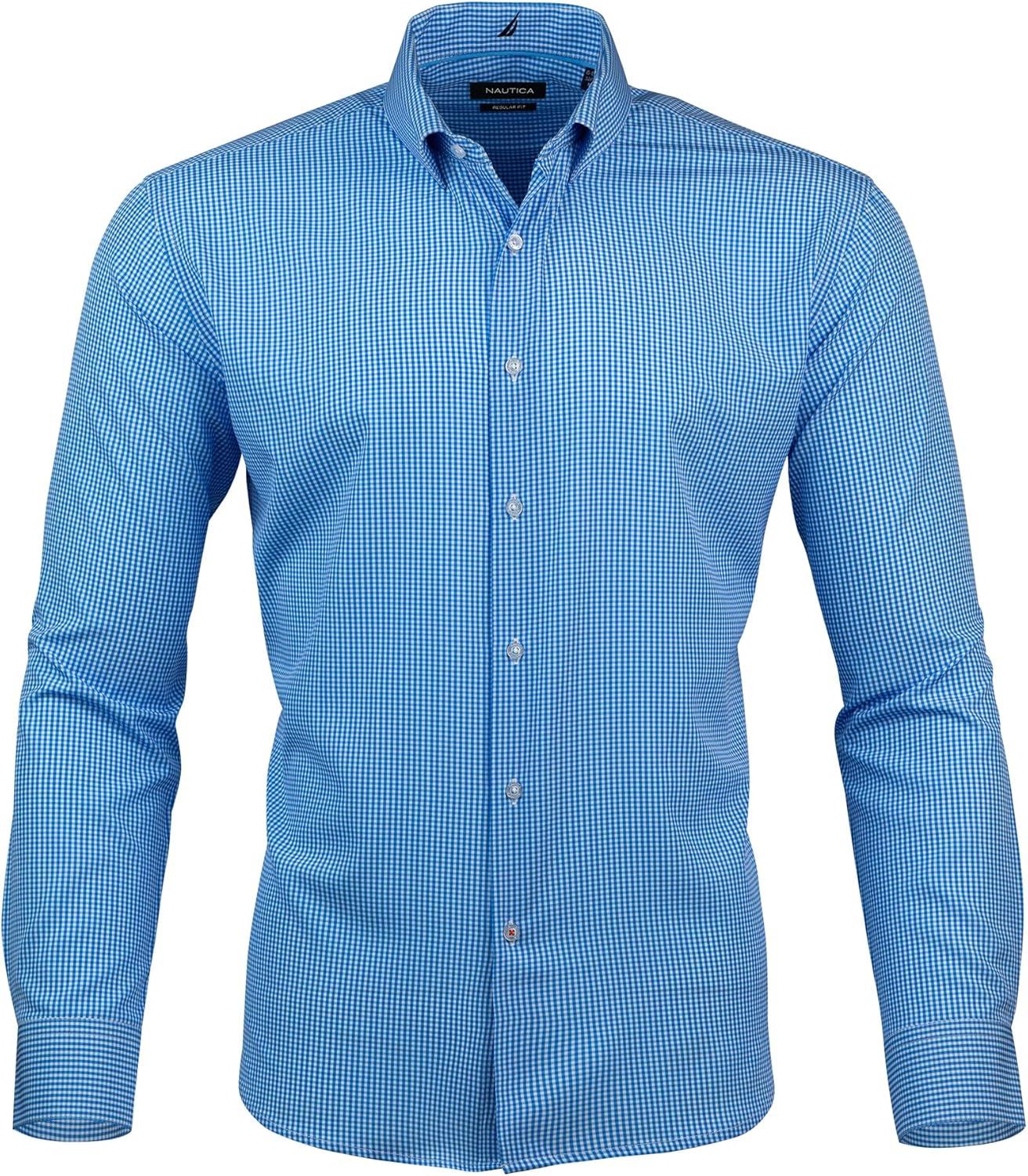 Nautica Regular Fit Long Sleeve Button Down Dress Shirts for Men - Wrinkle Free Long Sleeve Shirt Mens Formal 4-Way Stretch(Light Blue Check)