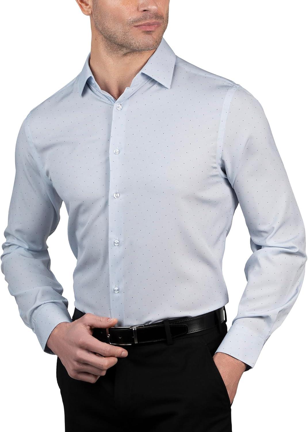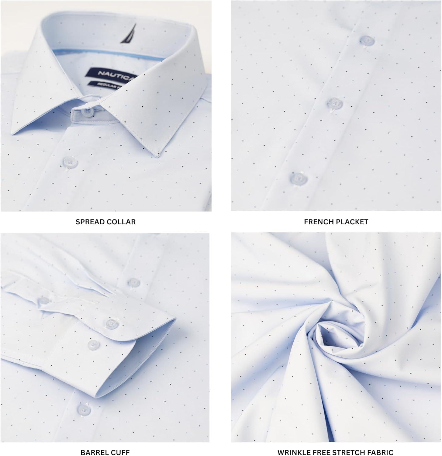 Nautica Regular Fit Long Sleeve Button Down Dress Shirts for Men – Wrinkle Free Long Sleeve Shirt Mens Formal 4-Way Stretch(Navy – Light Blue Dot)