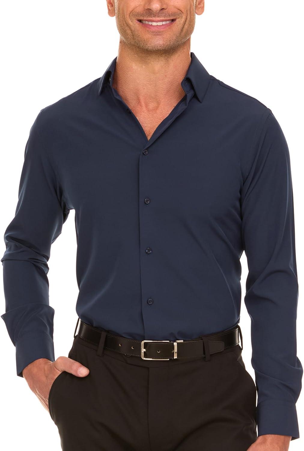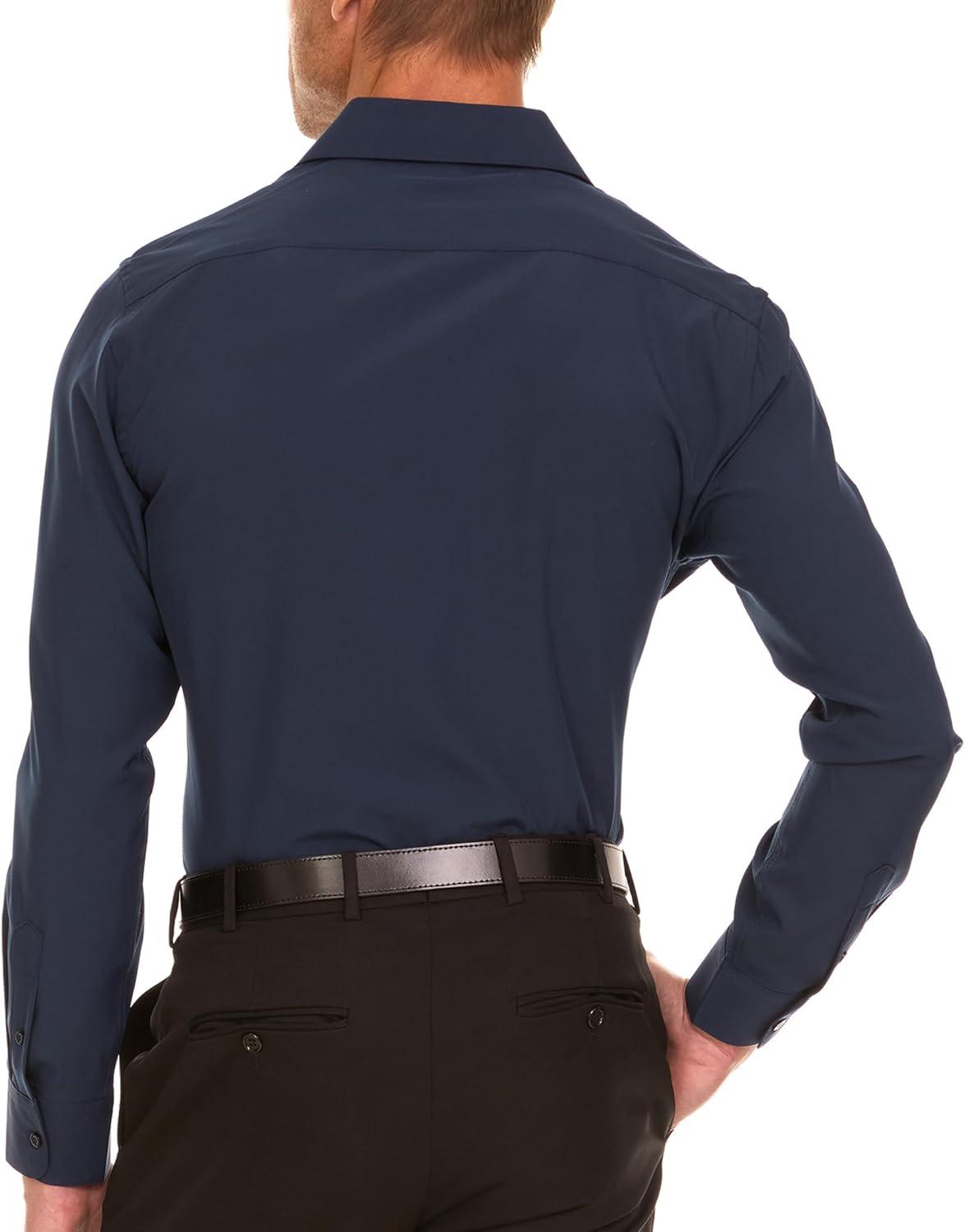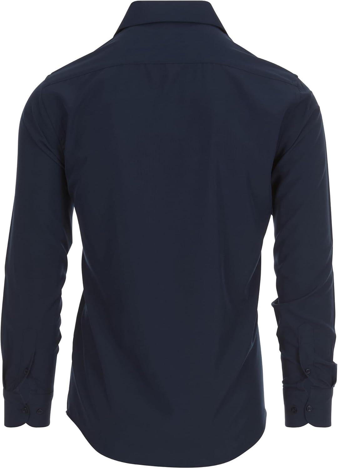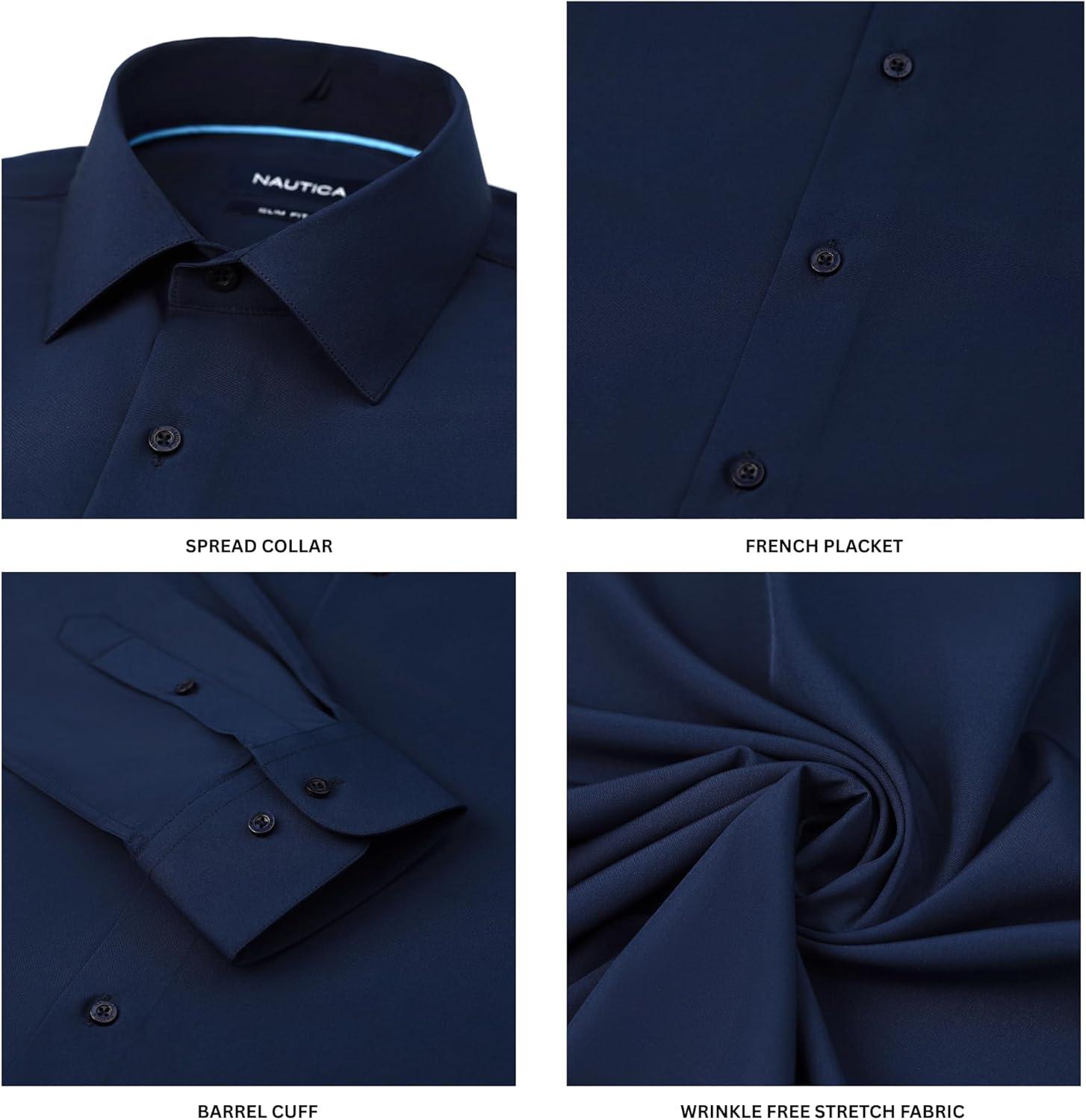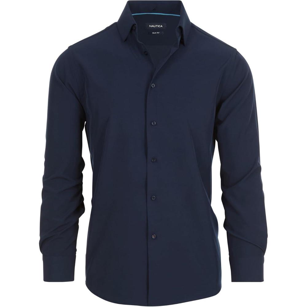 Nautica Slim Fit Mens Dress Shirts Long Sleeve Performance Polyester Blend Fabric Wrinkle Free 4-Way Stretch(Navy Solid)
