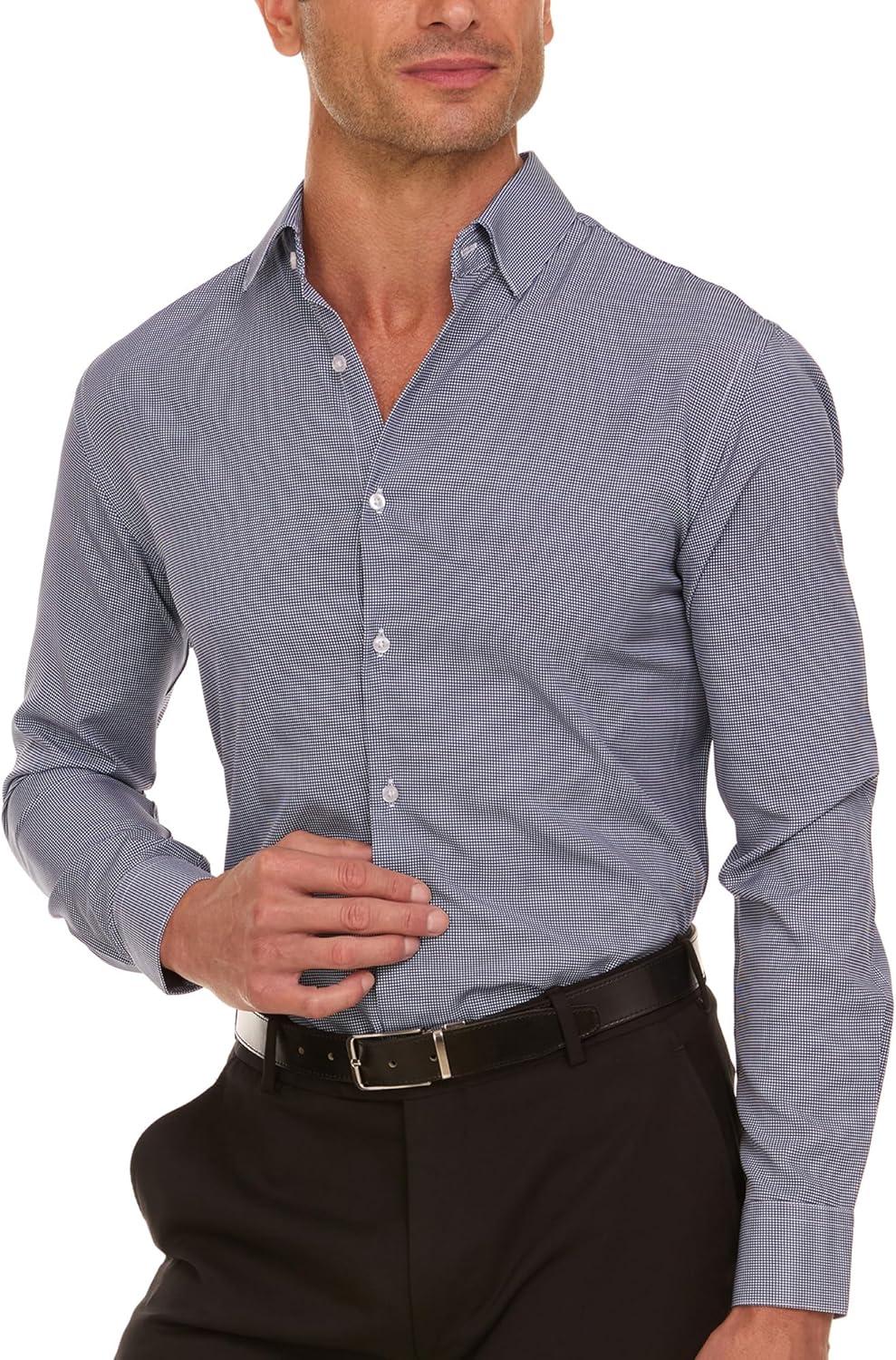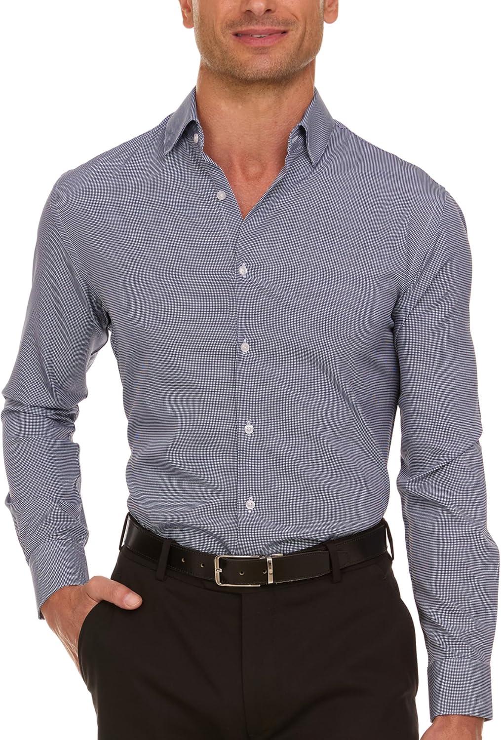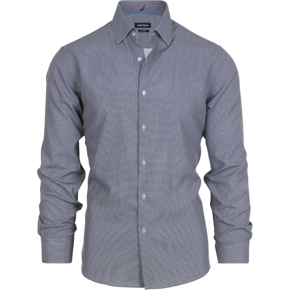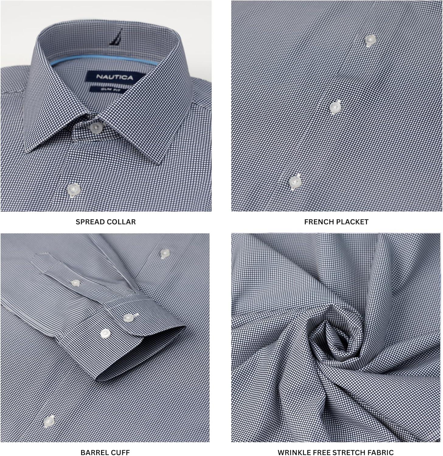 Nautica Slim Fit Mens Dress Shirts Long Sleeve Performance Polyester Fabric Wrinkle Free 4-Way Stretch(Black Micro Checks)