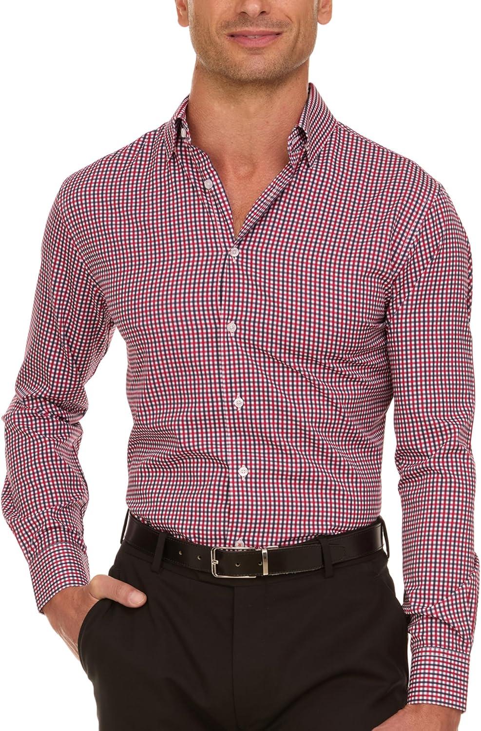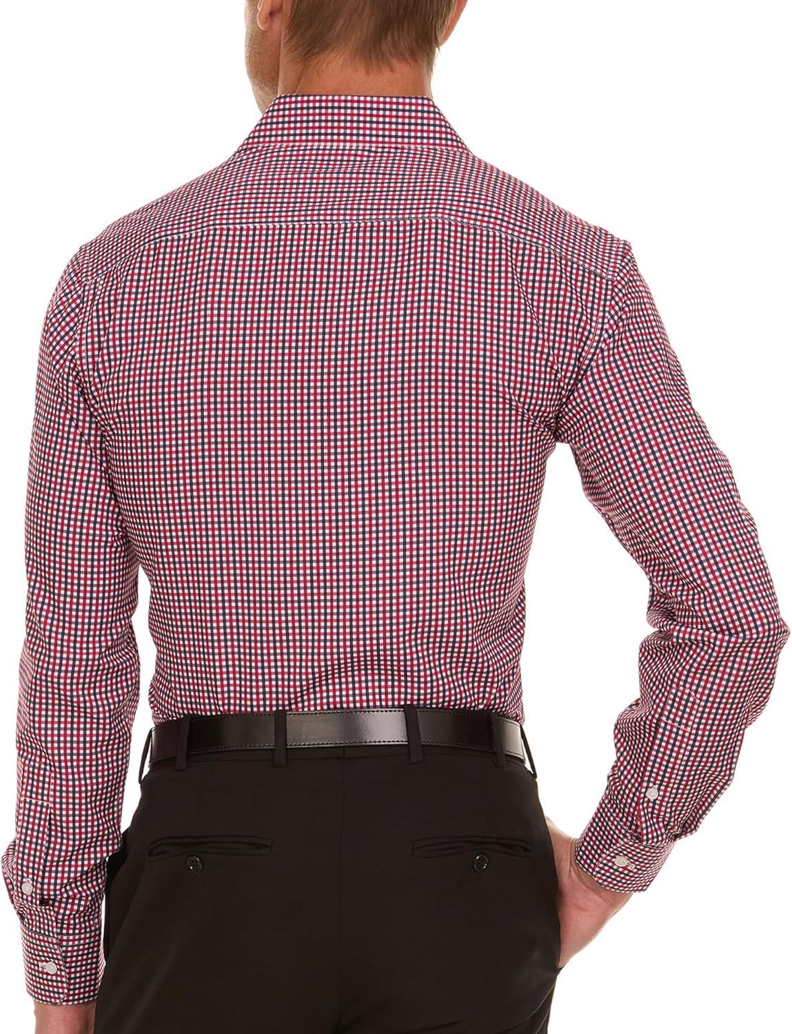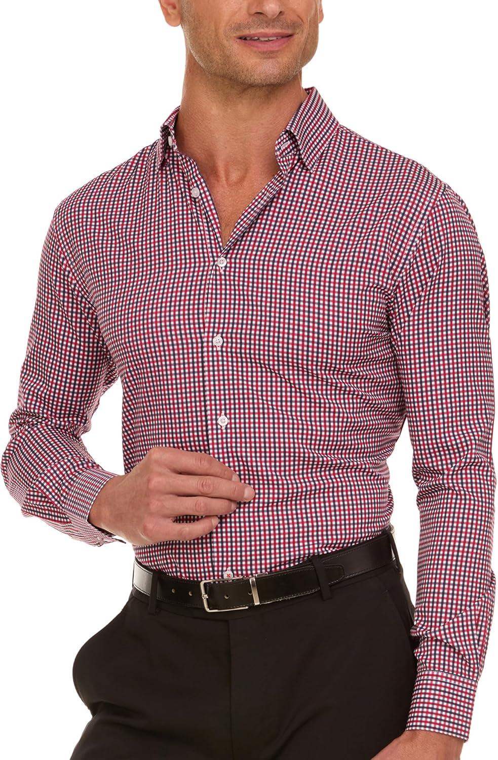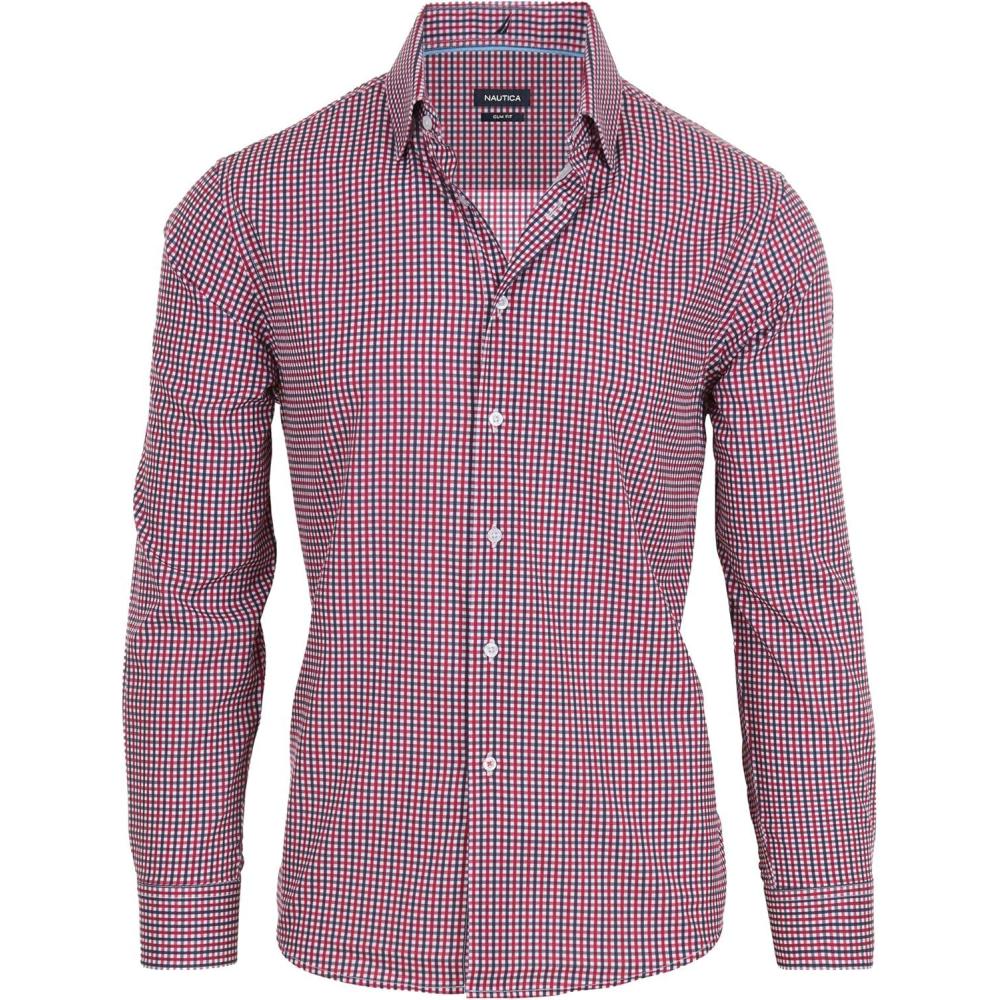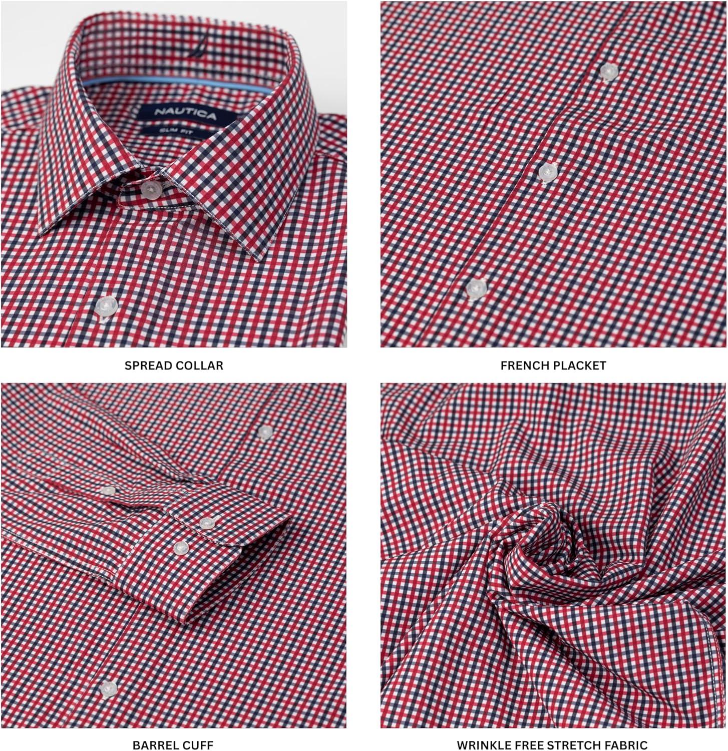 Nautica Slim Fit Mens Dress Shirts Long Sleeve Performance Polyester Fabric Wrinkle Free 4-Way Stretch(Red Plaid)