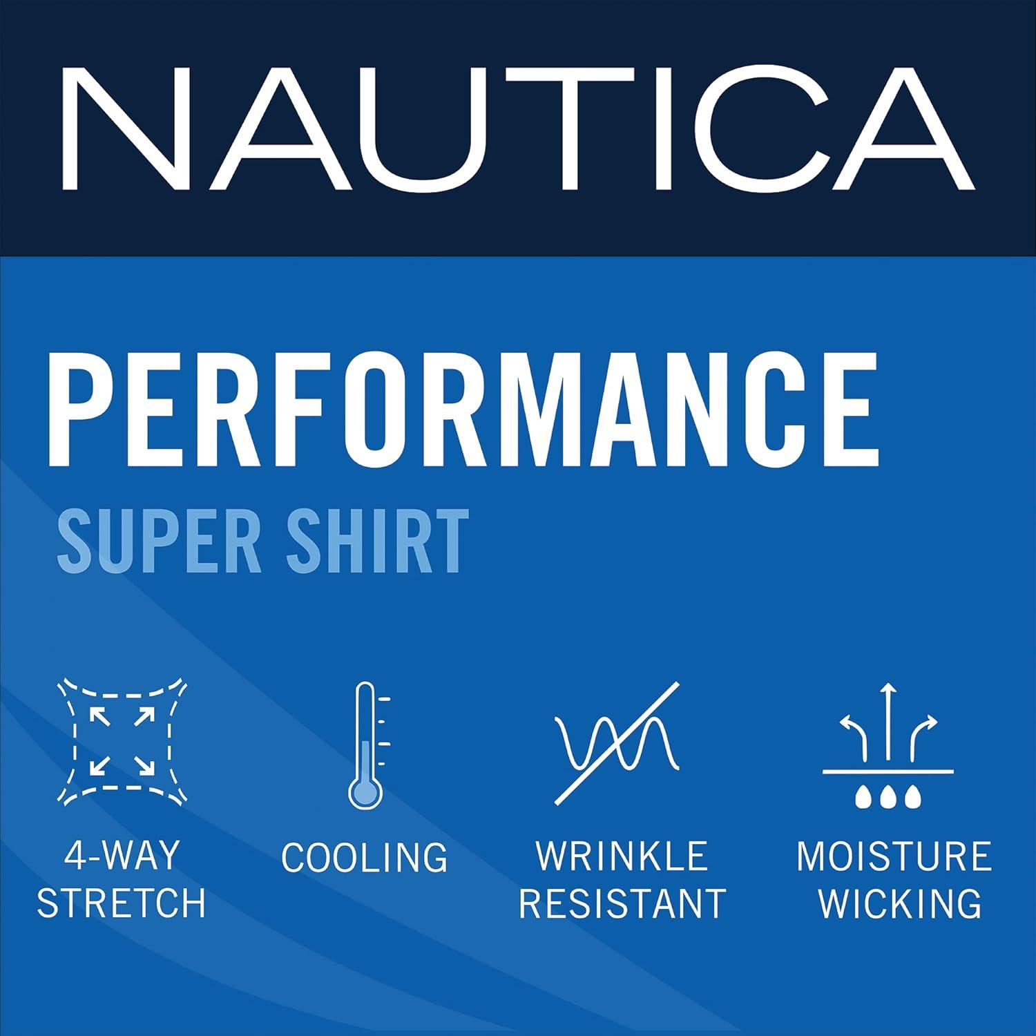 Nautica Slim Fit Mens Dress Shirts Long Sleeve Performance Polyester Fabric Wrinkle Free 4-Way Stretch(White – Mini Blue Dots)