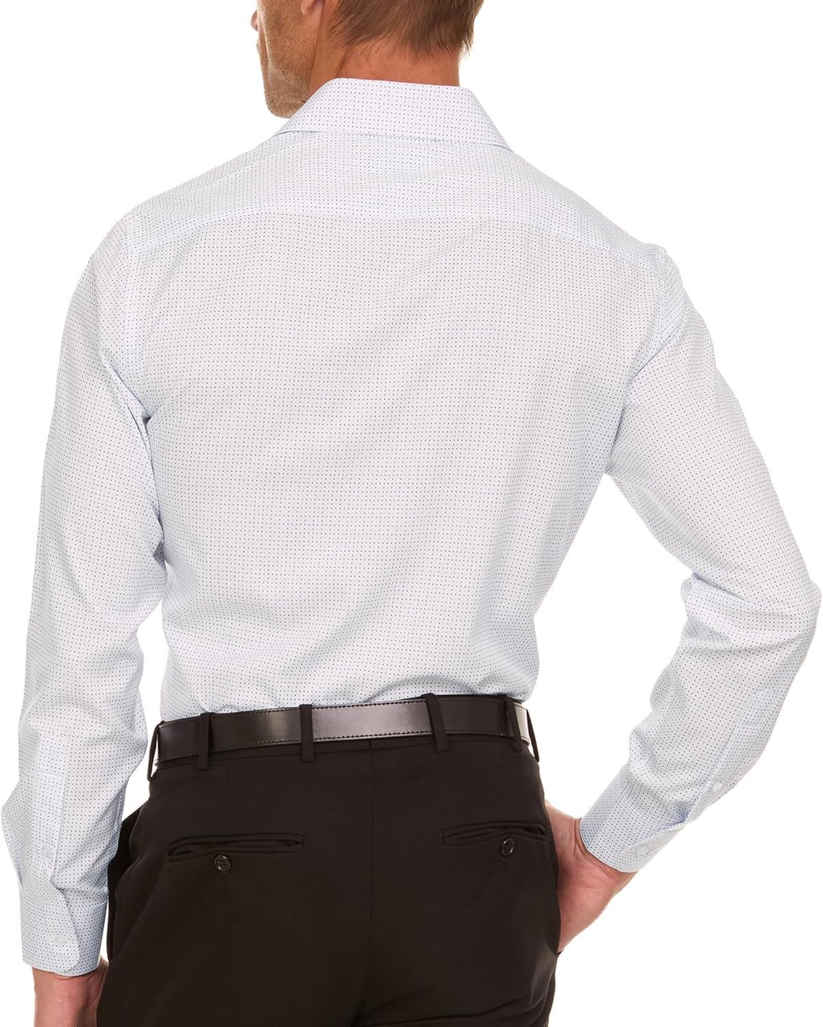 Nautica Slim Fit Mens Dress Shirts Long Sleeve Performance Polyester Fabric Wrinkle Free 4-Way Stretch(White – Mini Blue Dots)