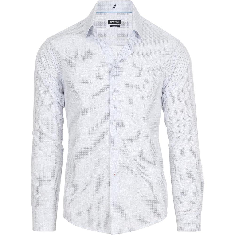 Nautica Slim Fit Mens Dress Shirts Long Sleeve Performance Polyester Fabric Wrinkle Free 4-Way Stretch(White - Mini Blue Dots)