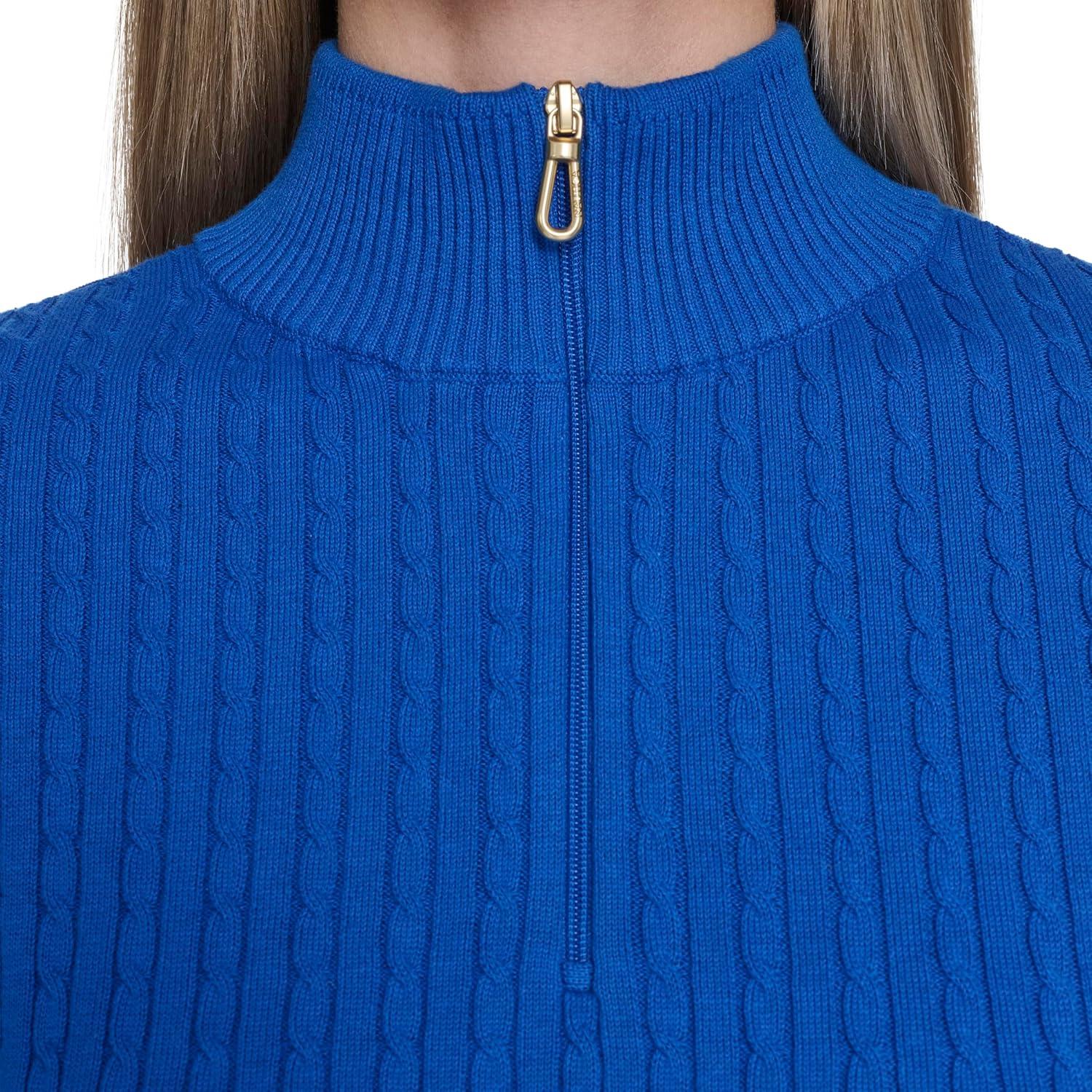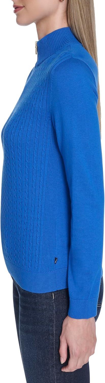 Nautica Womens 1/4 Zip Mockneck Cable Sweater(Cerulean)