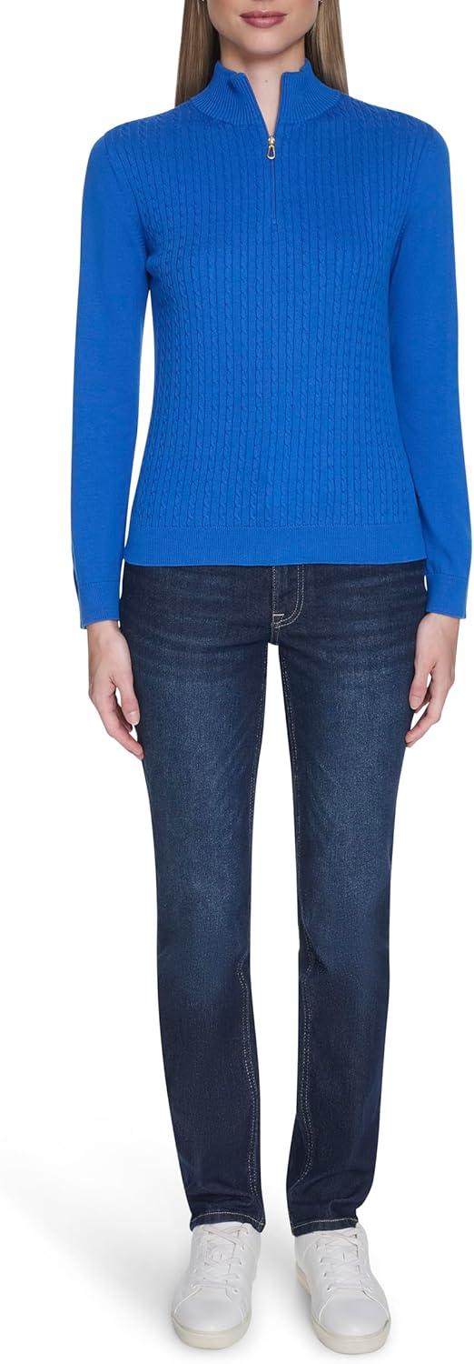 This Nautica Women's Jeans 1/4 Zip Mockneck Cable Sweater is a 1/4 Zip Mock Neck Solid Cable Sweater