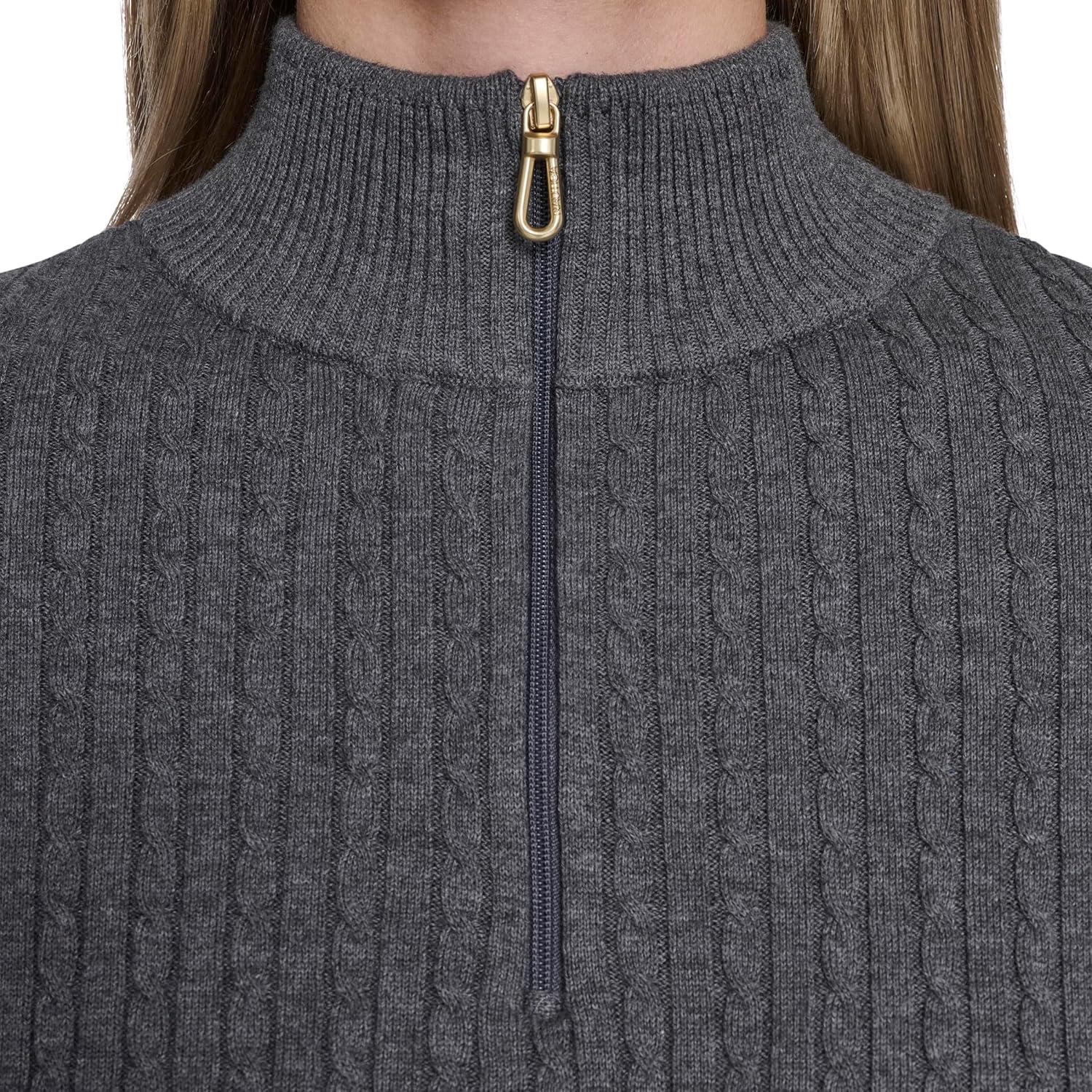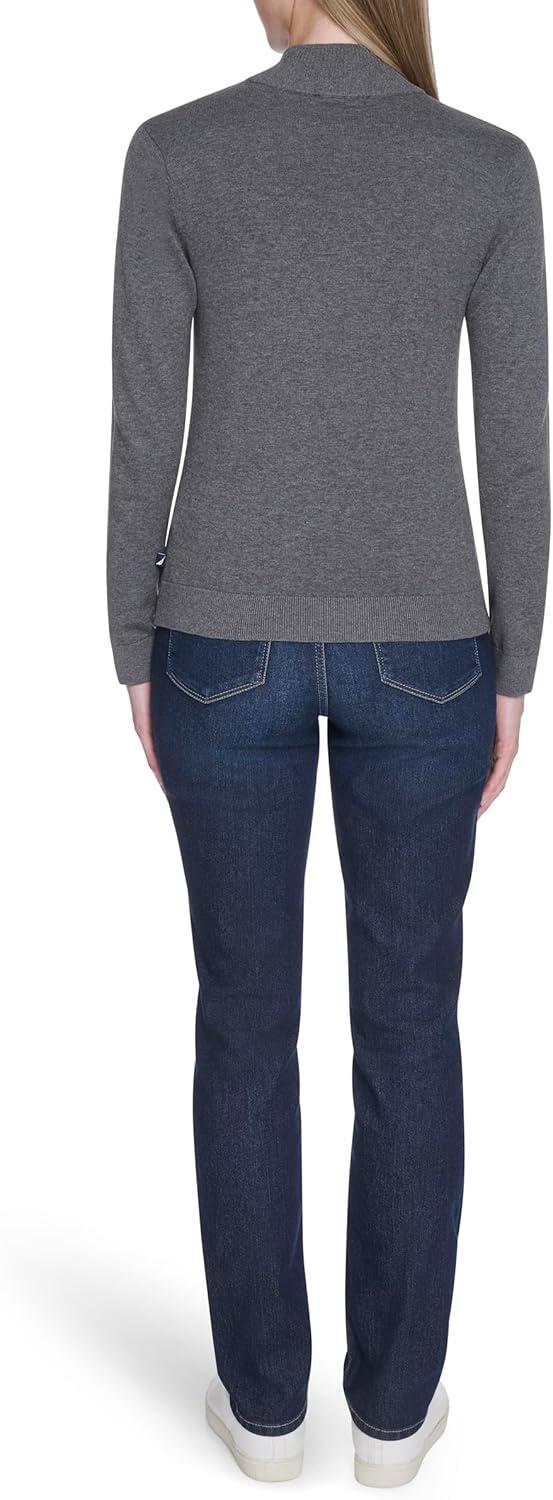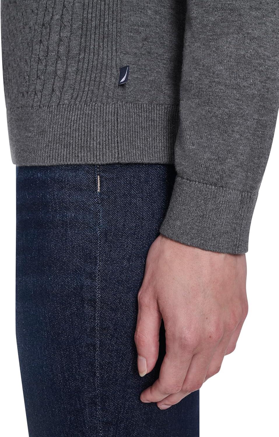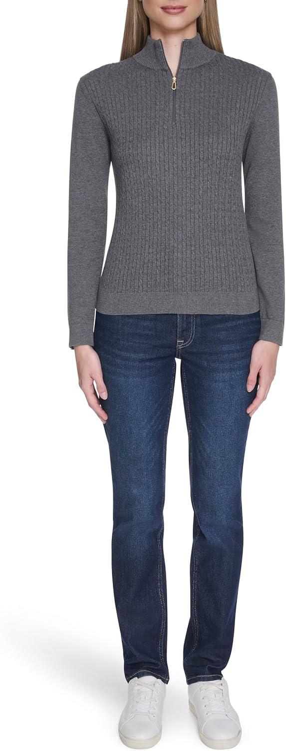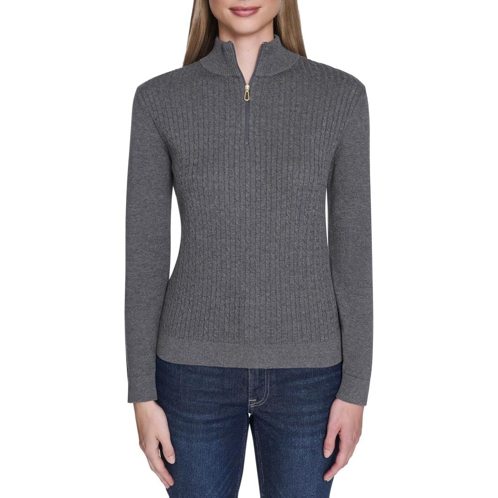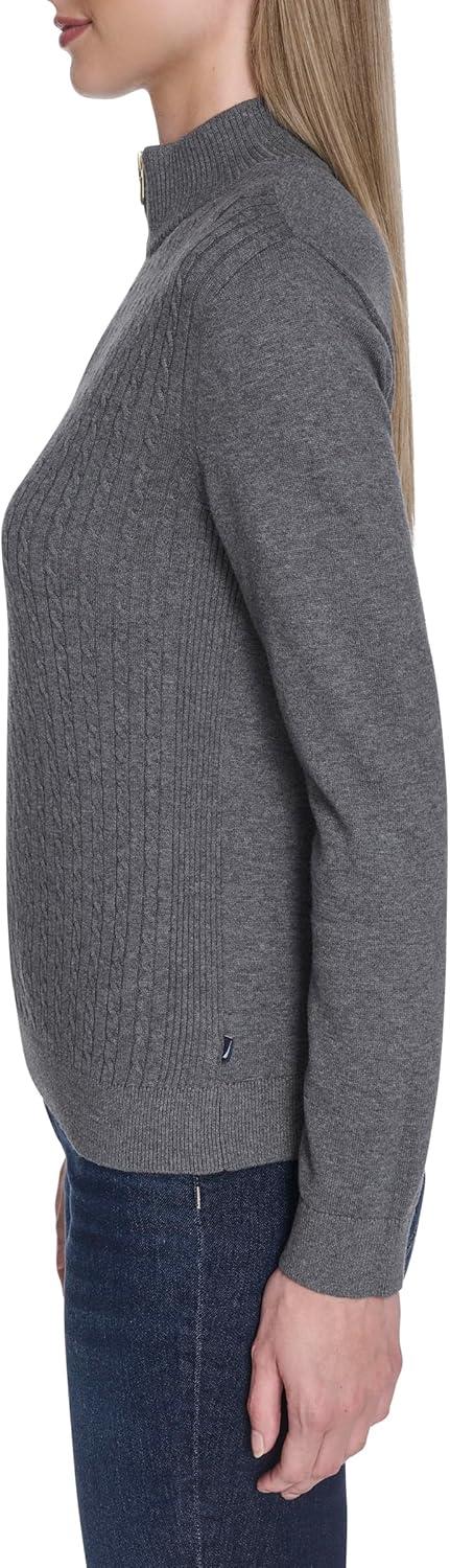 Nautica Womens 1/4 Zip Mockneck Cable Sweater(Fog Heather)