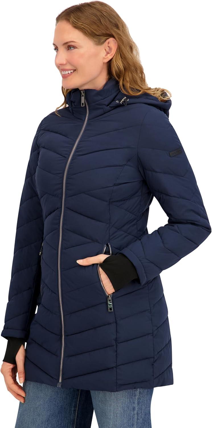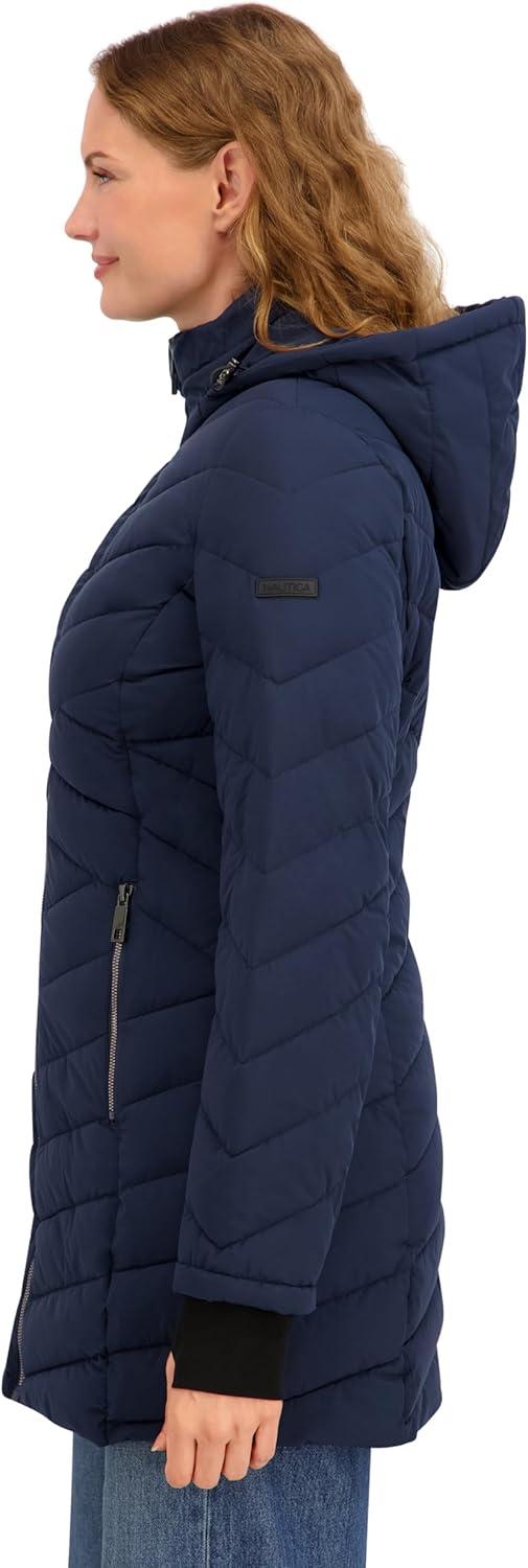 imageNautica Womens 34 Length Light Weight PufferNavy Seas