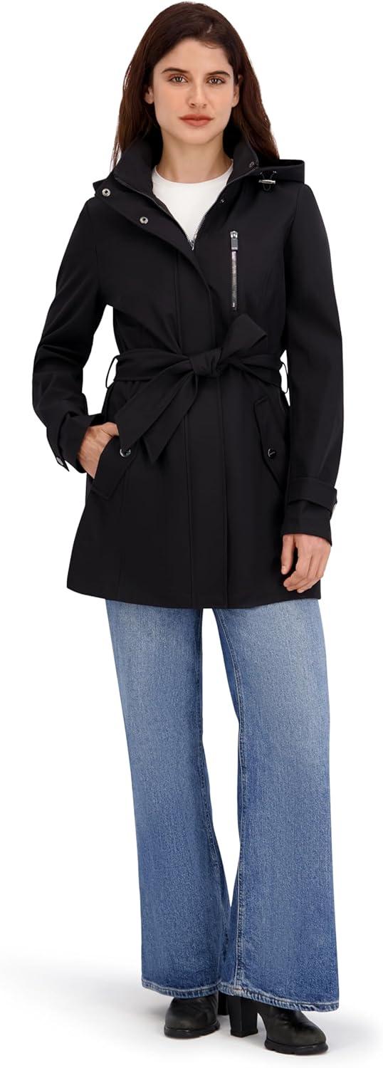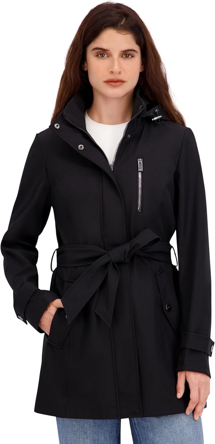 Nautica womens Bonded Rain Jacket With Belt – Water-resistant, Wind-resistant Transitional Coat(Black)